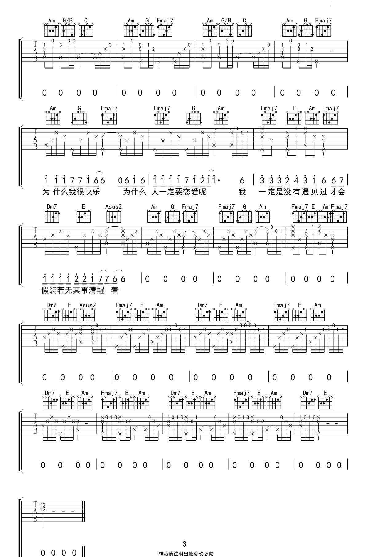 - 陈栢宇《你瞒我瞒》吉他谱_吉他弹唱谱_7t吉他教室编配
