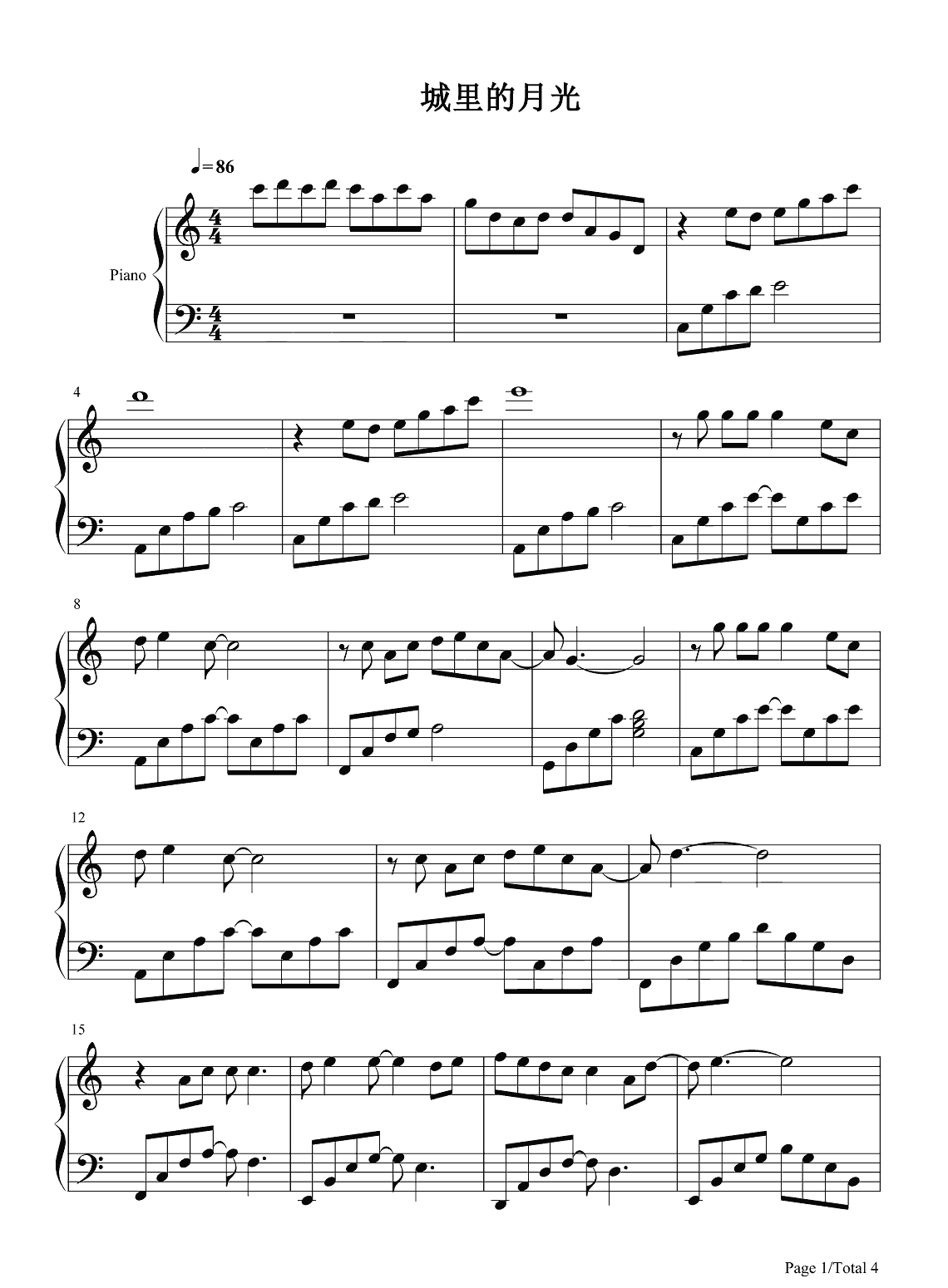 钢琴许美静《城里的月光》钢琴谱