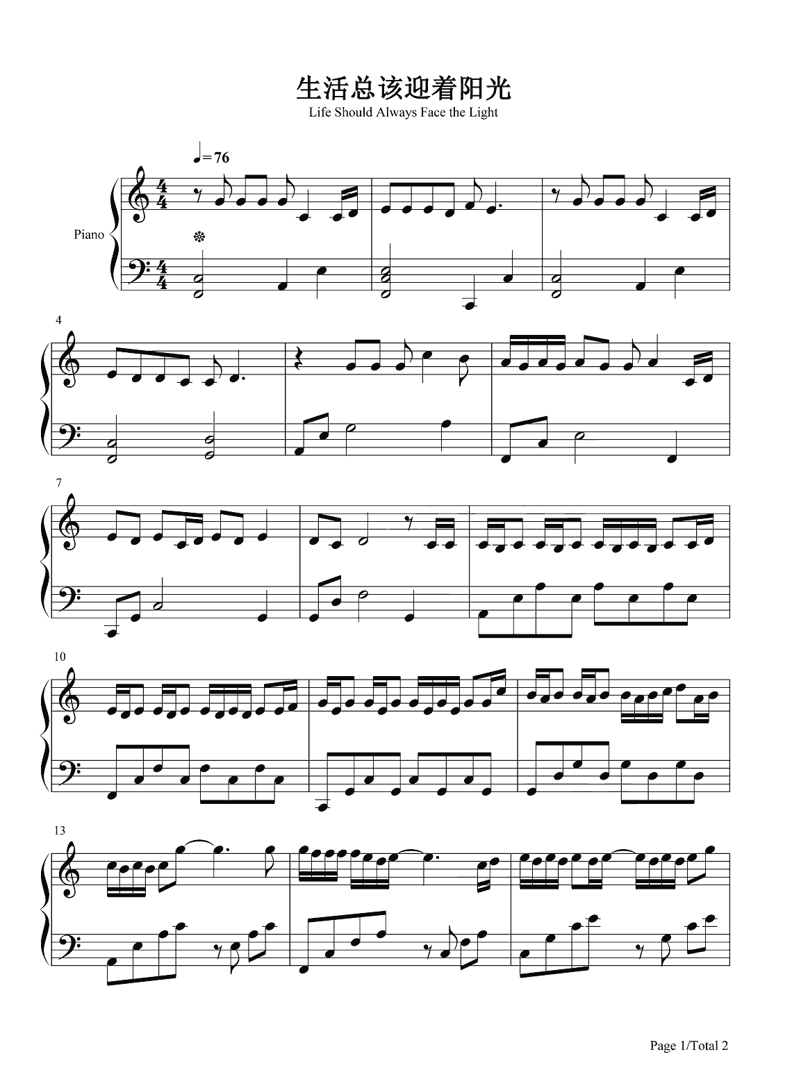钢琴周深《生活总该迎着光亮》钢琴谱