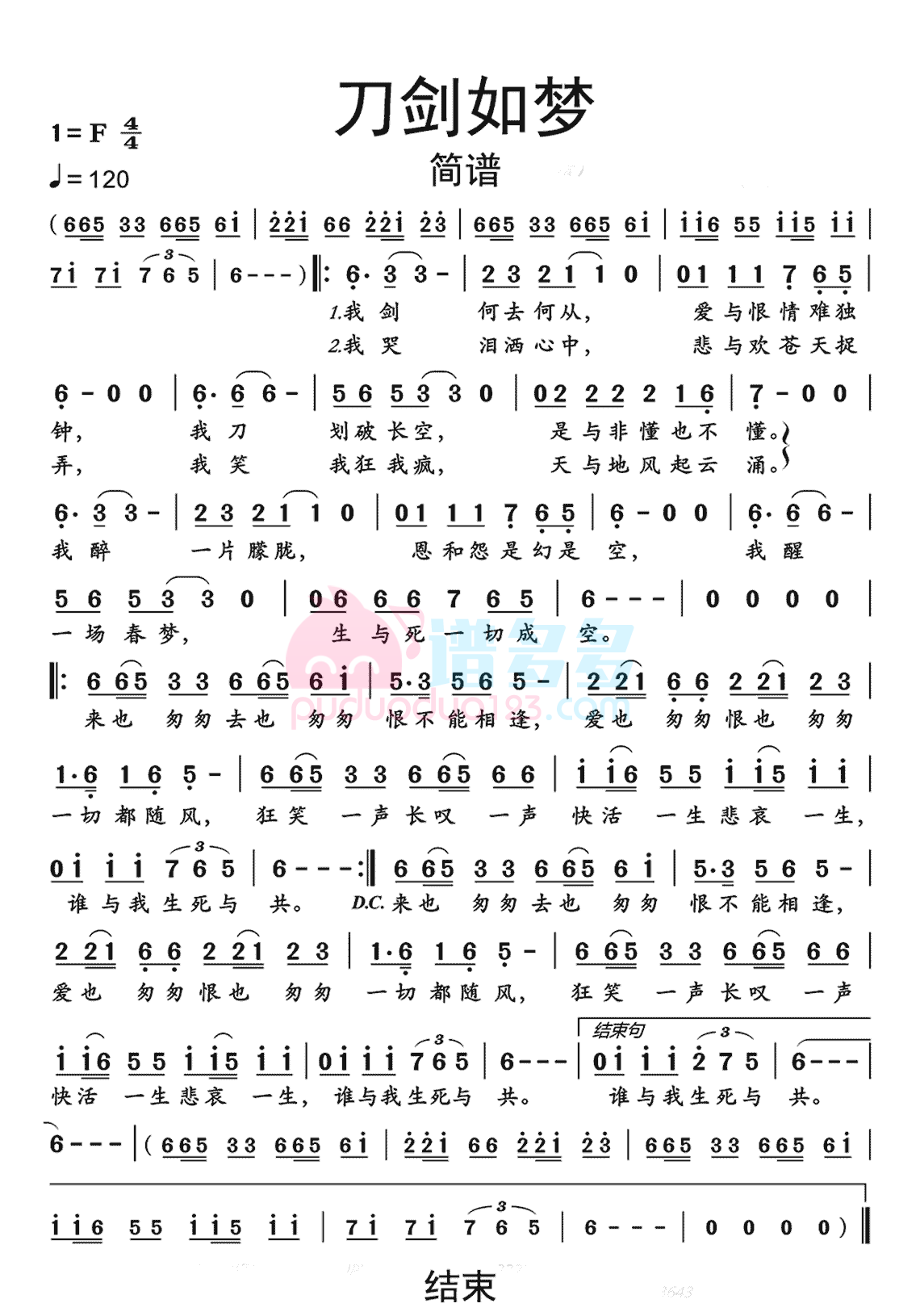 周华健《刀剑如梦》简谱...