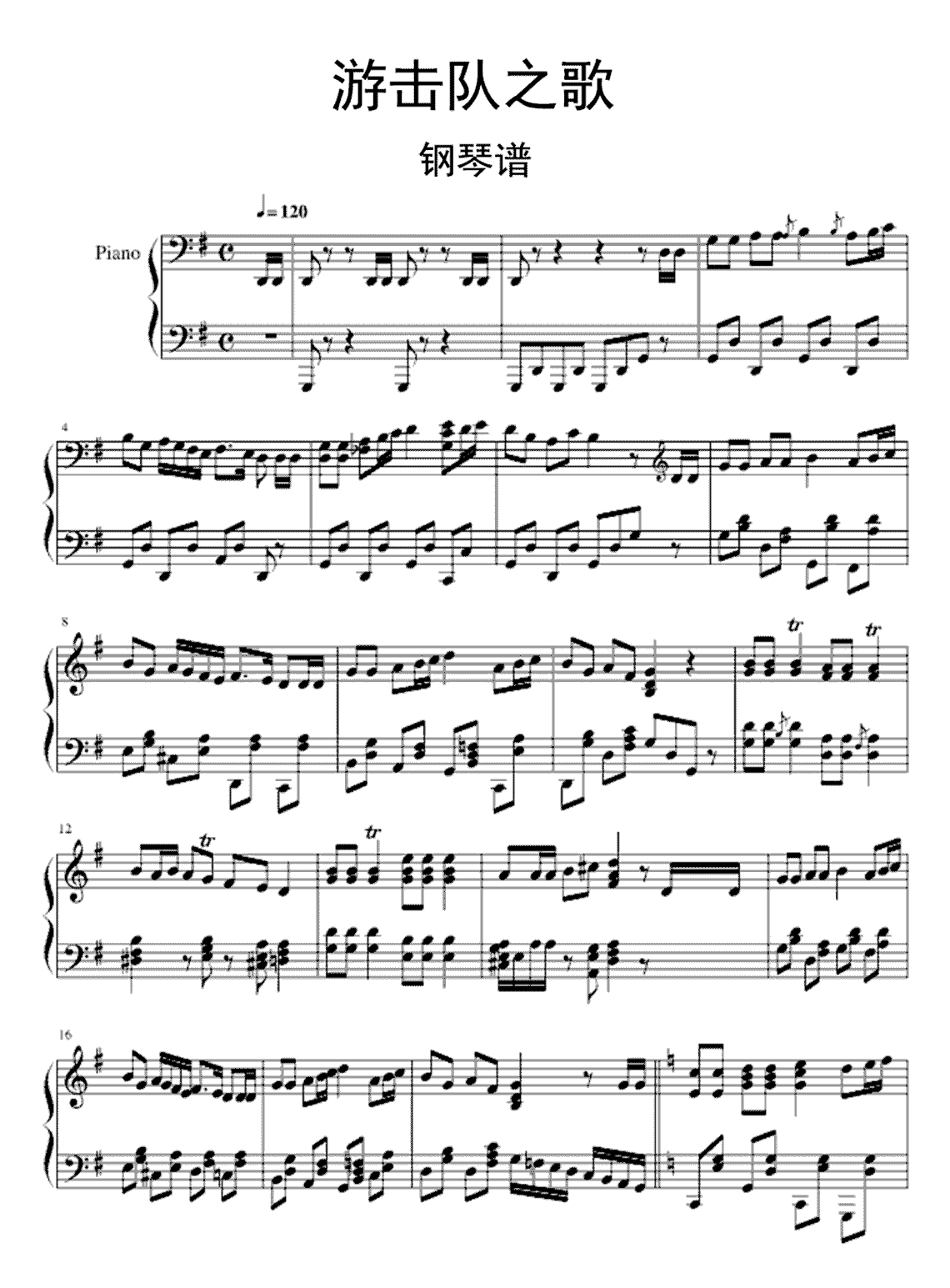 钢琴《游击队之歌》钢琴谱