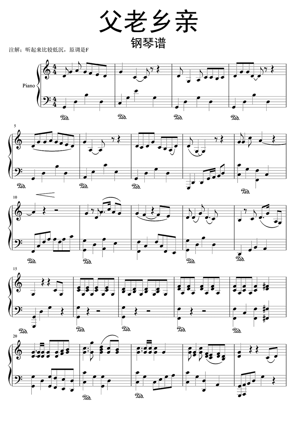 钢琴《父老乡亲》钢琴谱