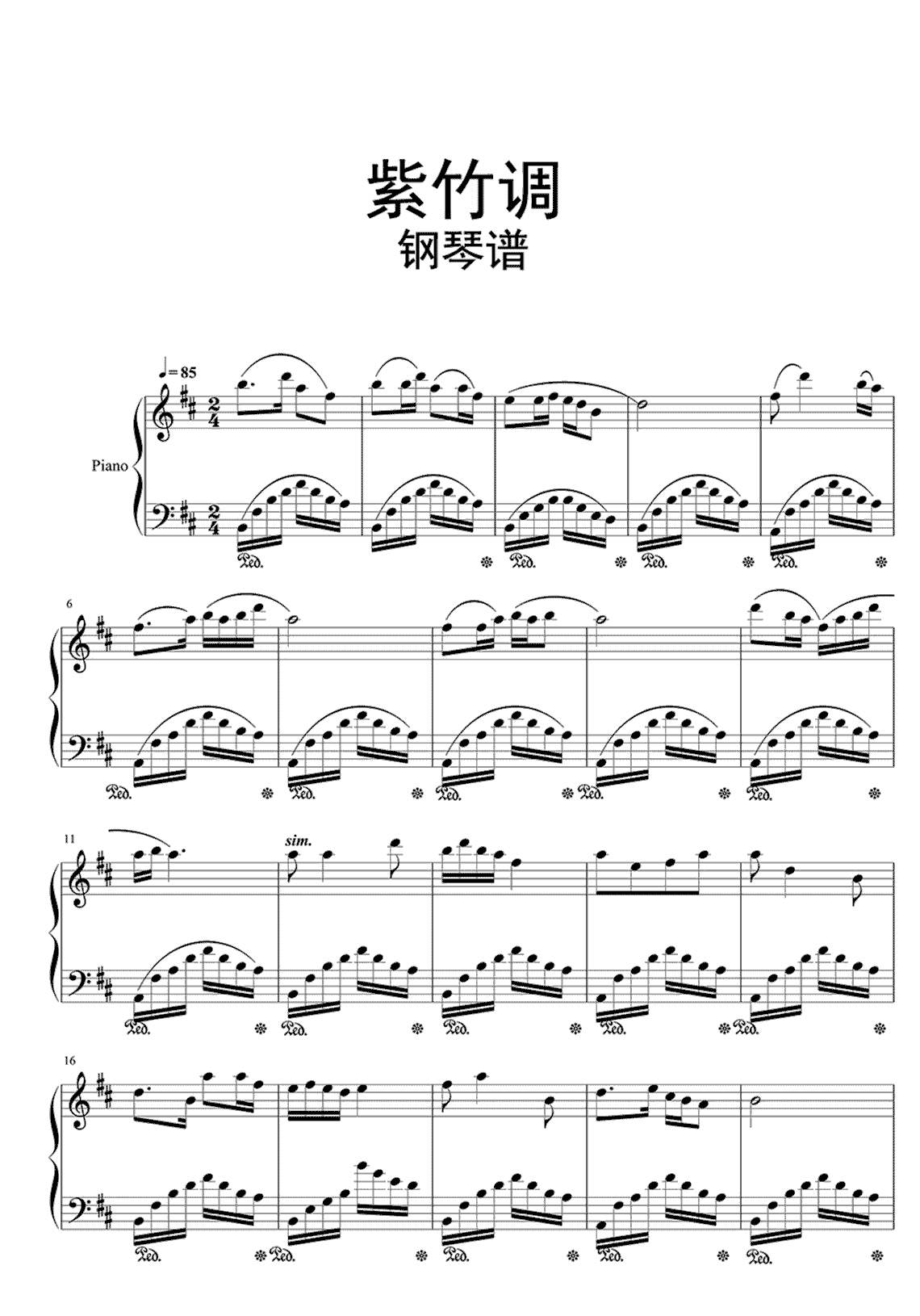 《紫竹调》钢琴谱...