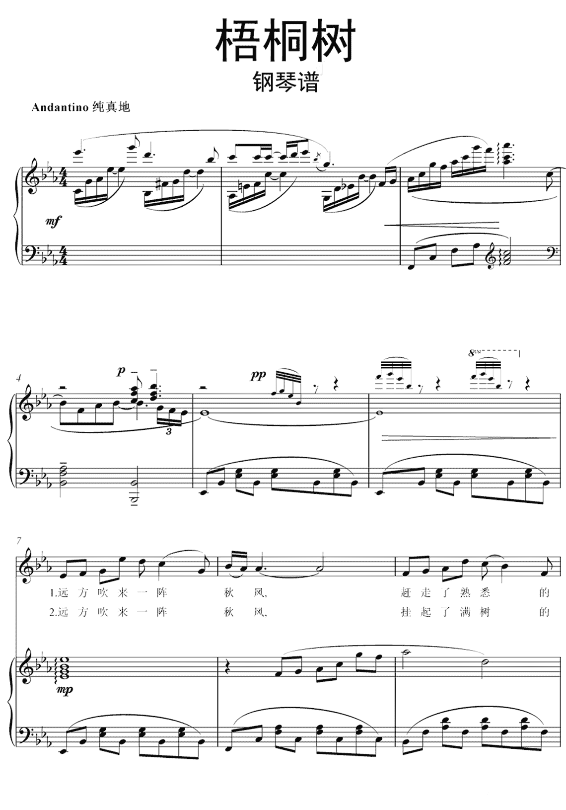 钢琴陈燕《梧桐树》钢琴谱
