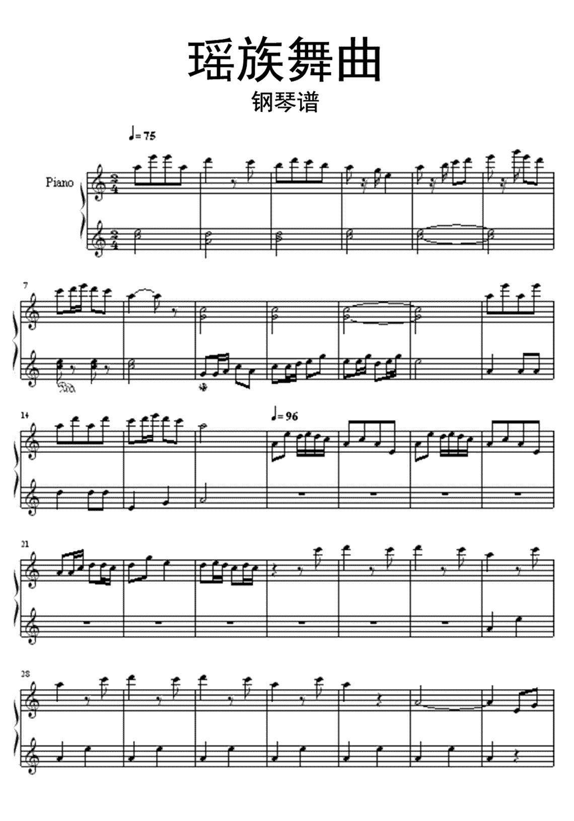钢琴《瑶族舞曲》钢琴谱