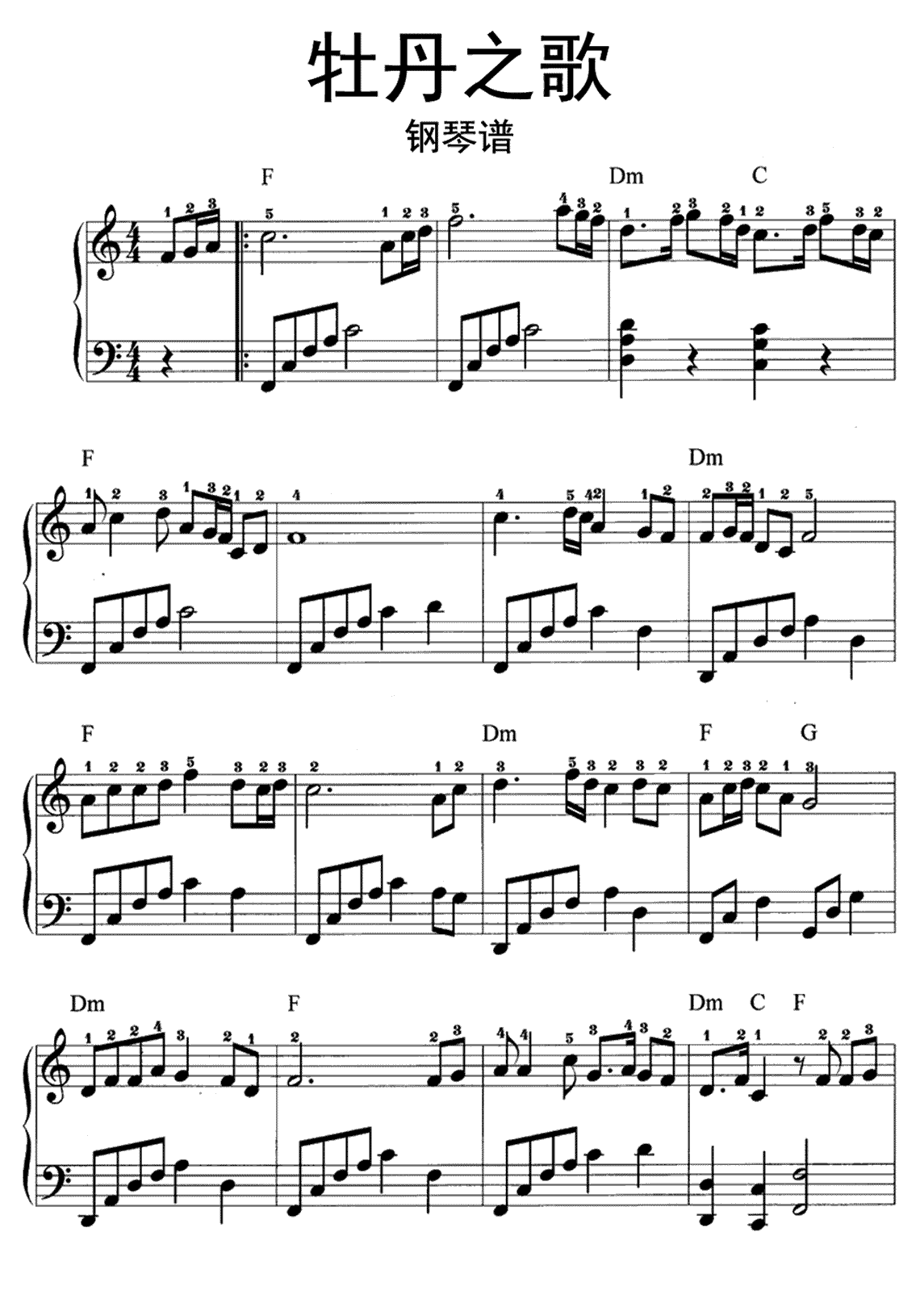 钢琴蒋大为《牡丹之歌》钢琴谱