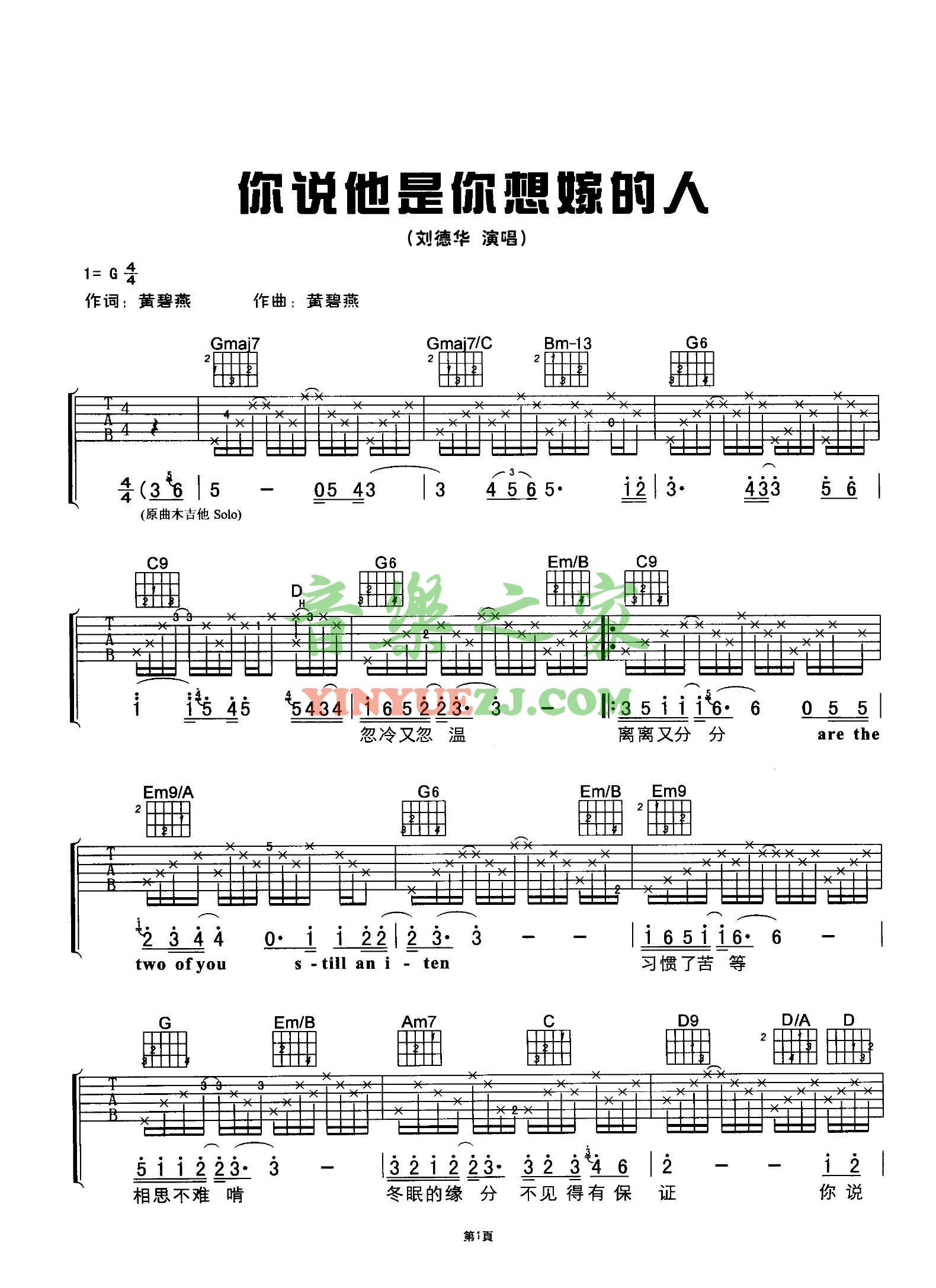 刘德华《你说他是你想嫁的人》吉他谱_G调吉他弹唱谱...