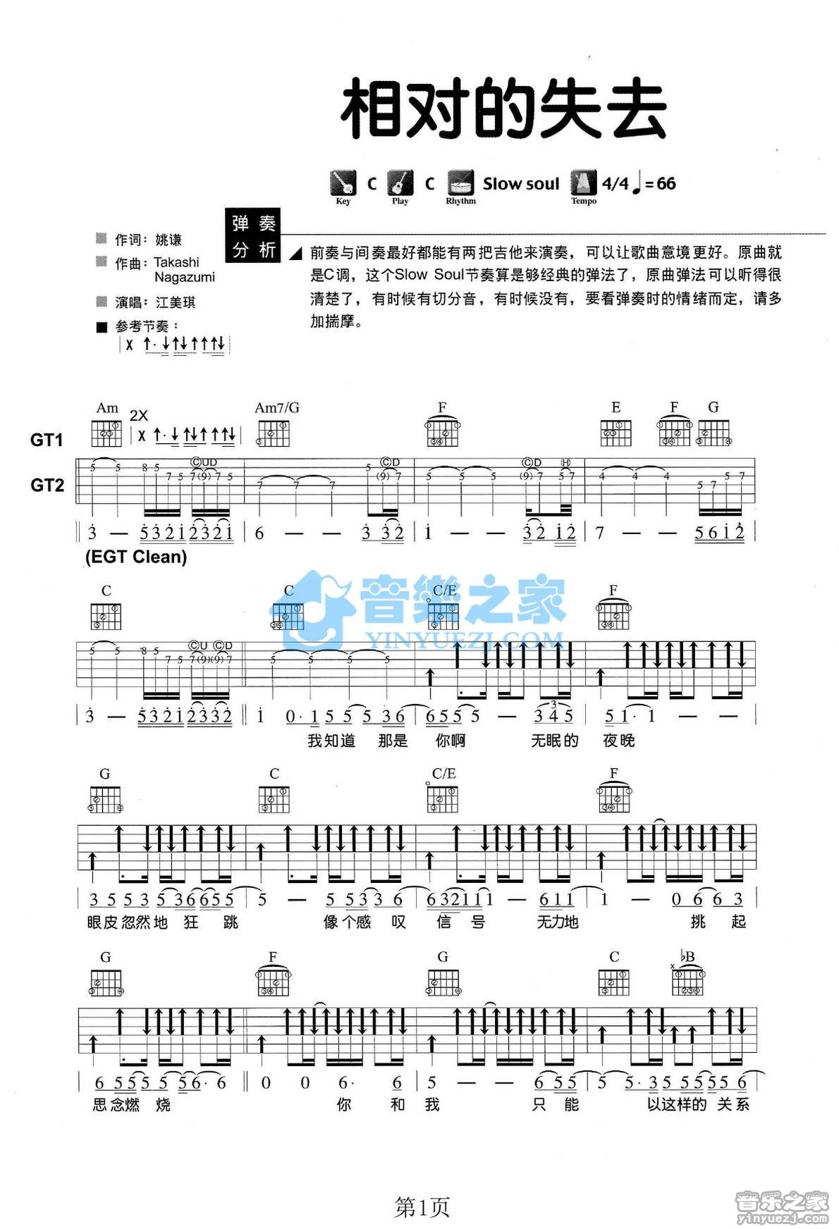 吉他江美琪《相对的失去》吉他谱_吉他弹唱谱_YYZJ编配