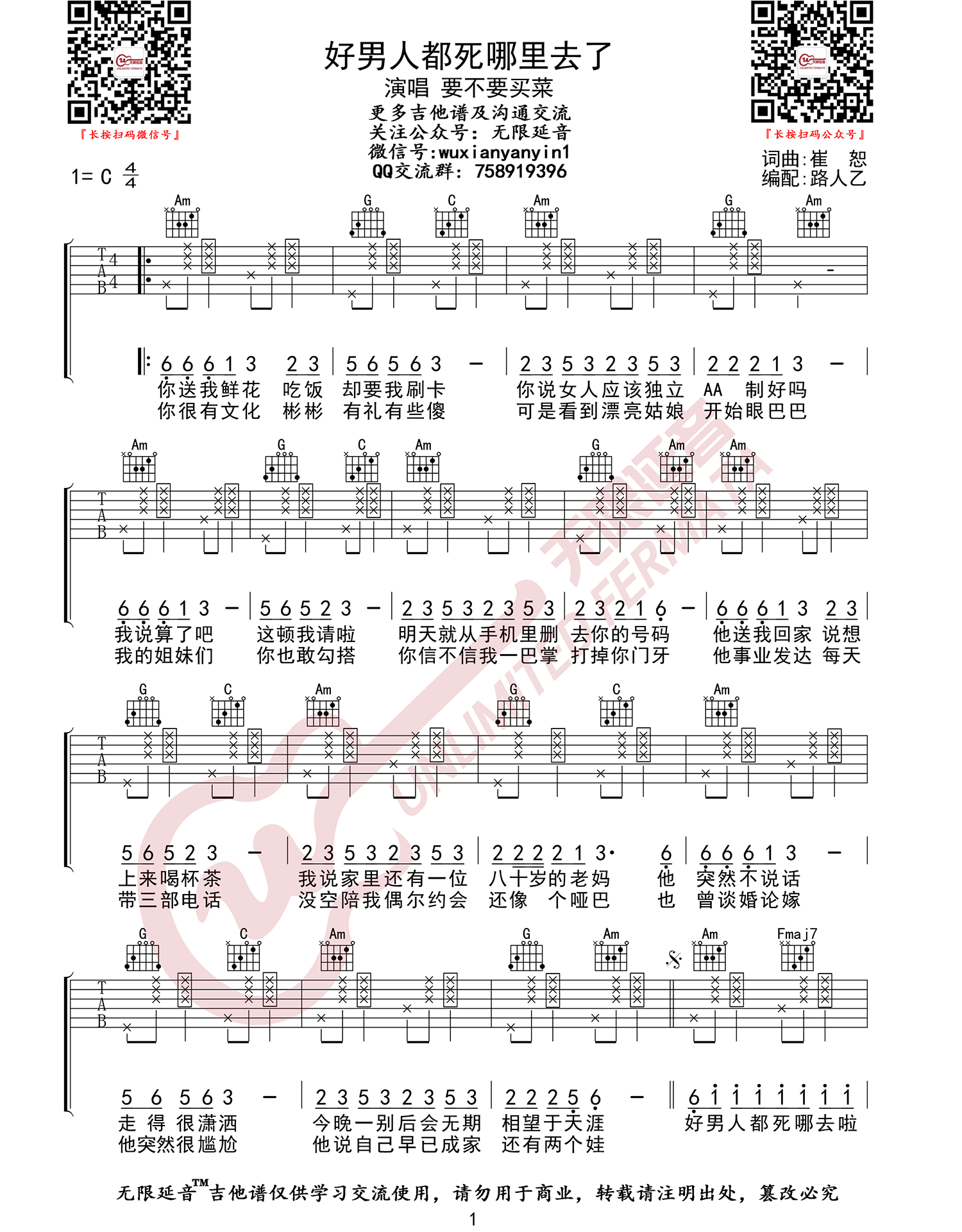 要不要买菜《好男人都死哪去了》吉他谱_C调吉他弹唱谱...
