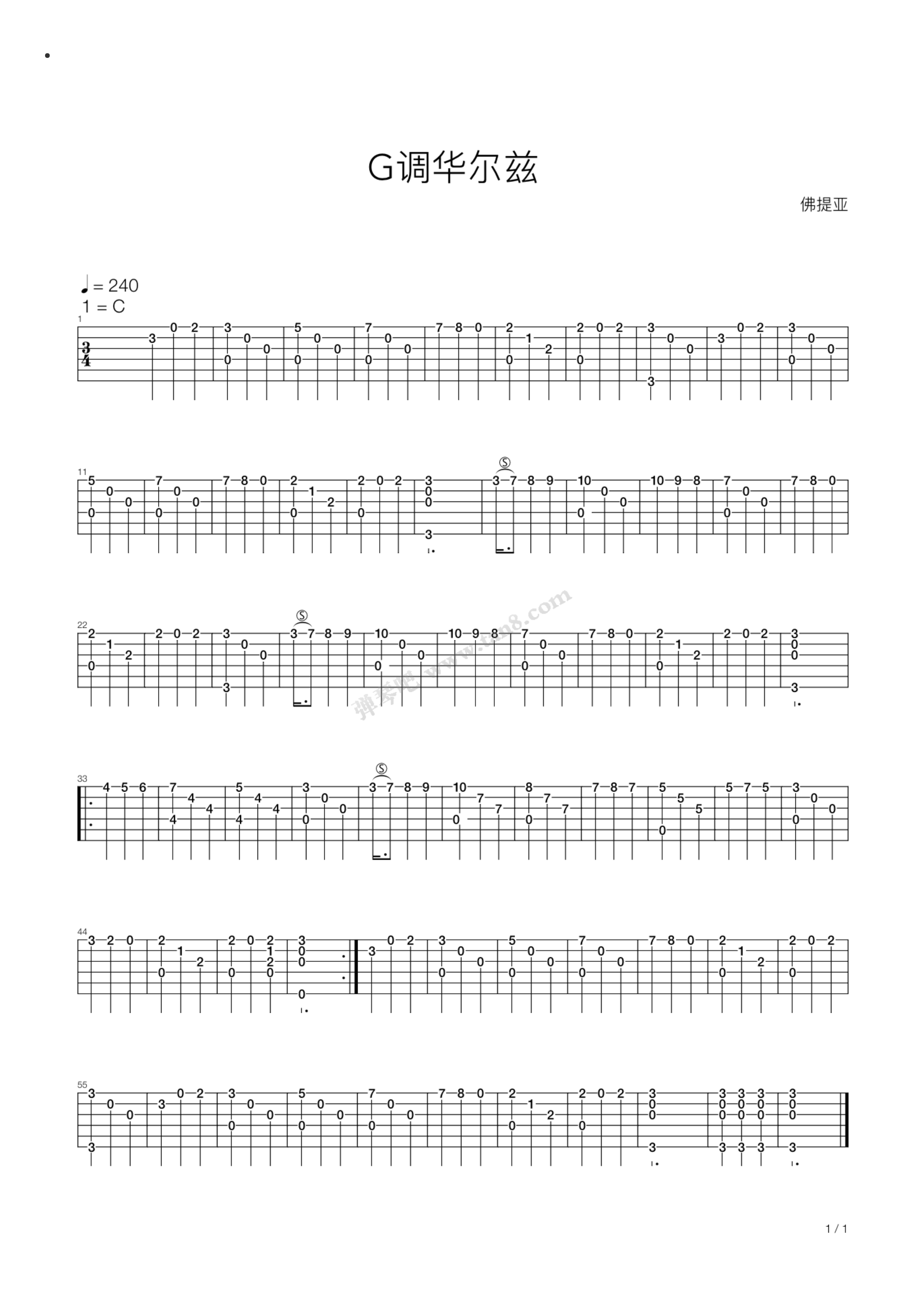 《G调华尔兹》,(吉他六线谱吉他独奏六线谱)...