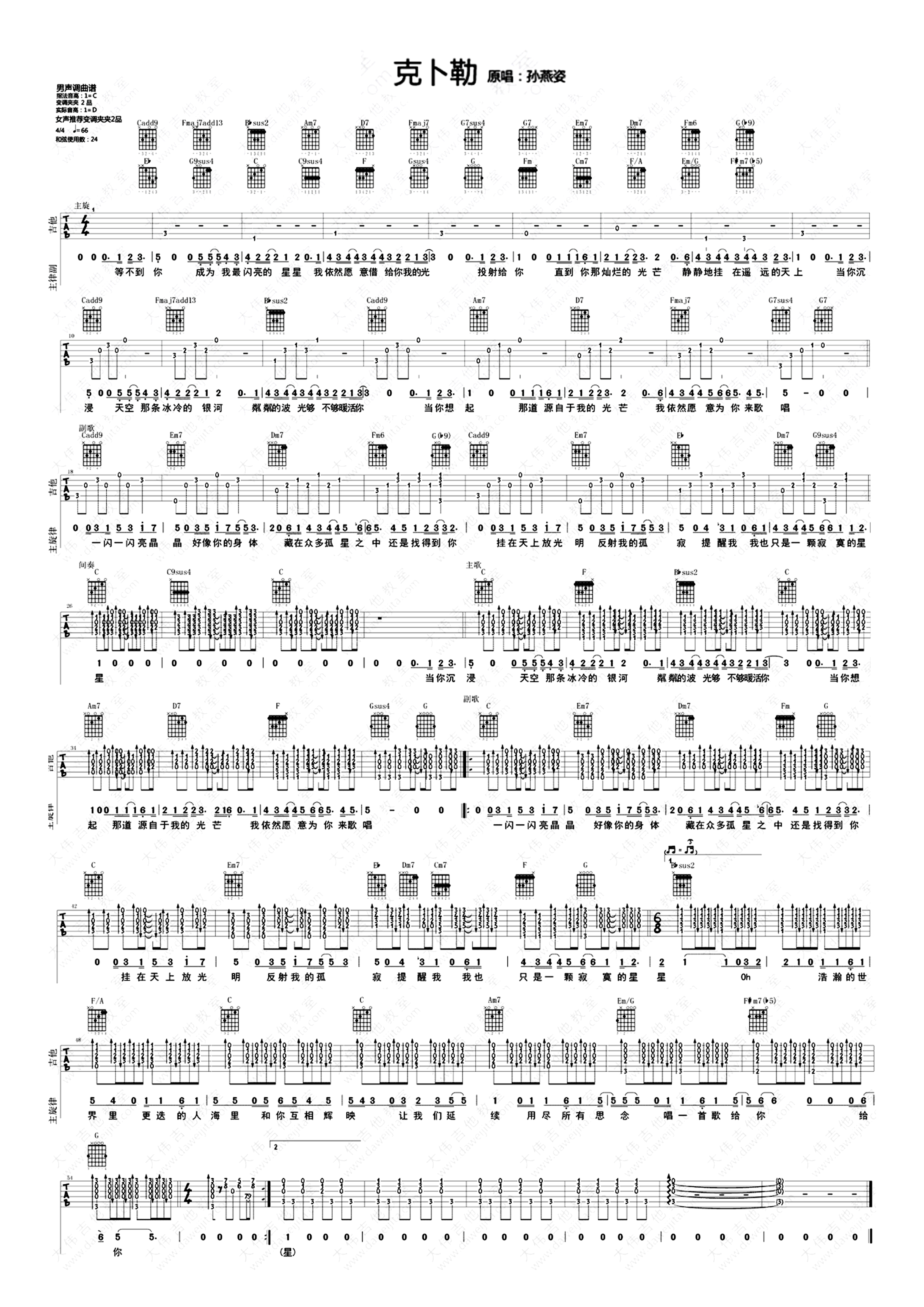 吉他孙燕姿《克卜勒》吉他谱_吉他弹唱谱_大伟吉他编配