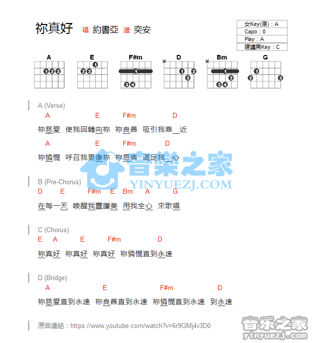 A调版约书亚《你真好》吉他和弦弹唱谱...