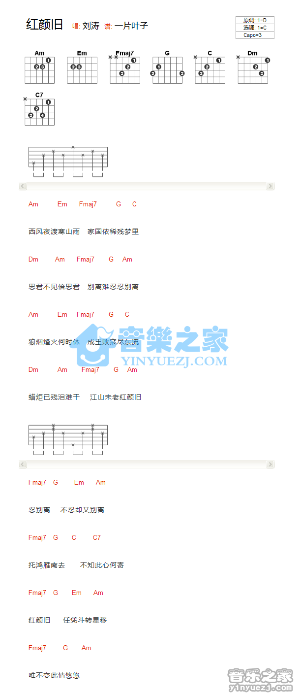 吉他刘涛《红颜旧》吉他谱_吉他弹唱谱_YYZJ编配