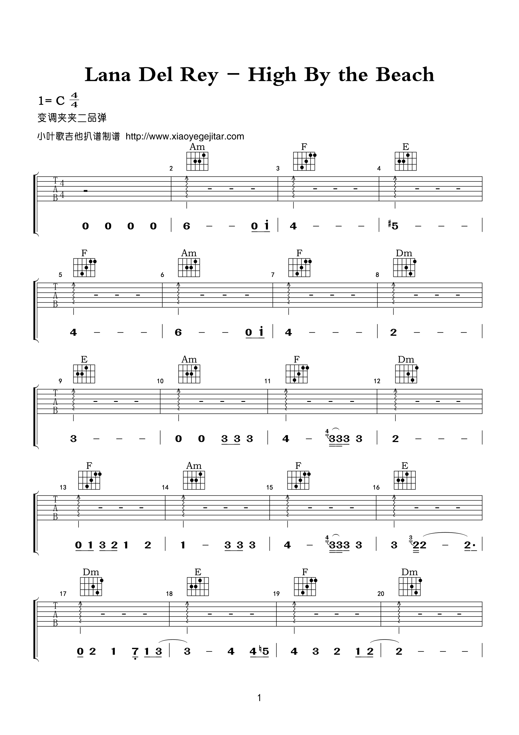 吉他《High By the Beach》吉他谱_吉他弹唱谱_小叶歌编配