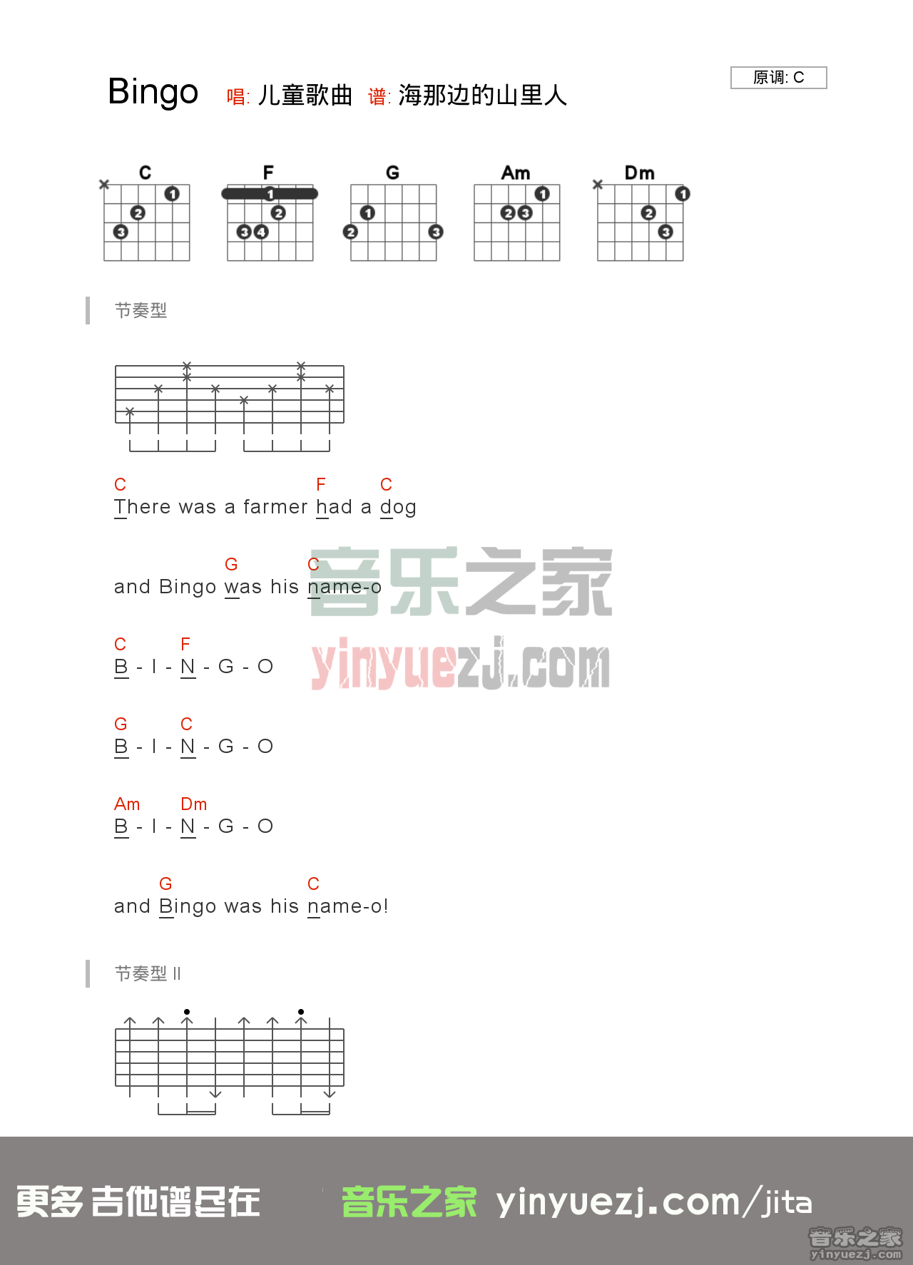 吉他儿歌《bingo》吉他谱_吉他弹唱谱