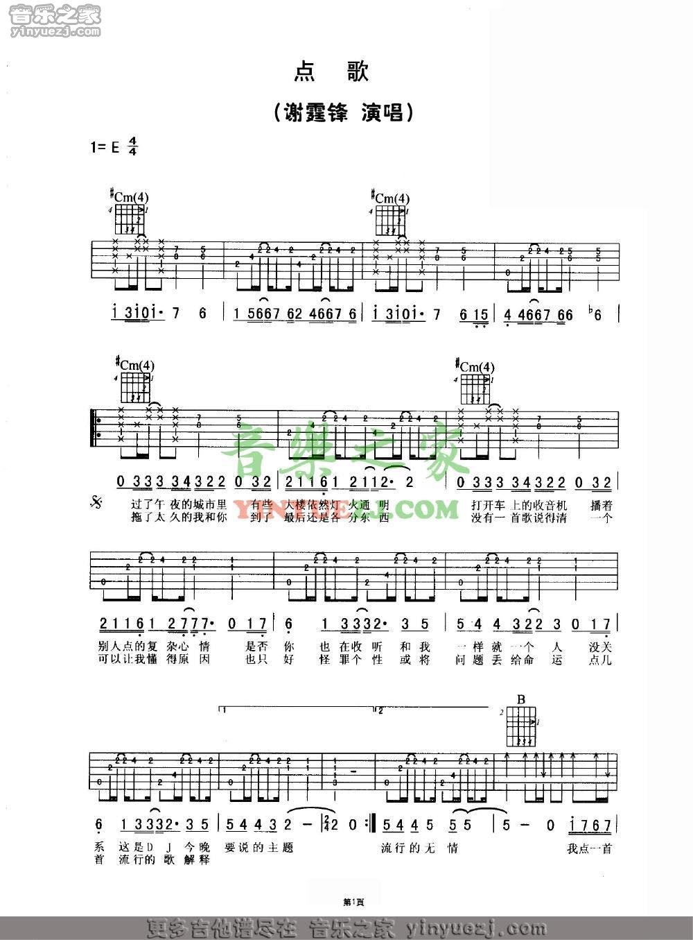 谢霆锋《点歌》吉他谱,YYZJ编配出品,共有6张高清图谱。...