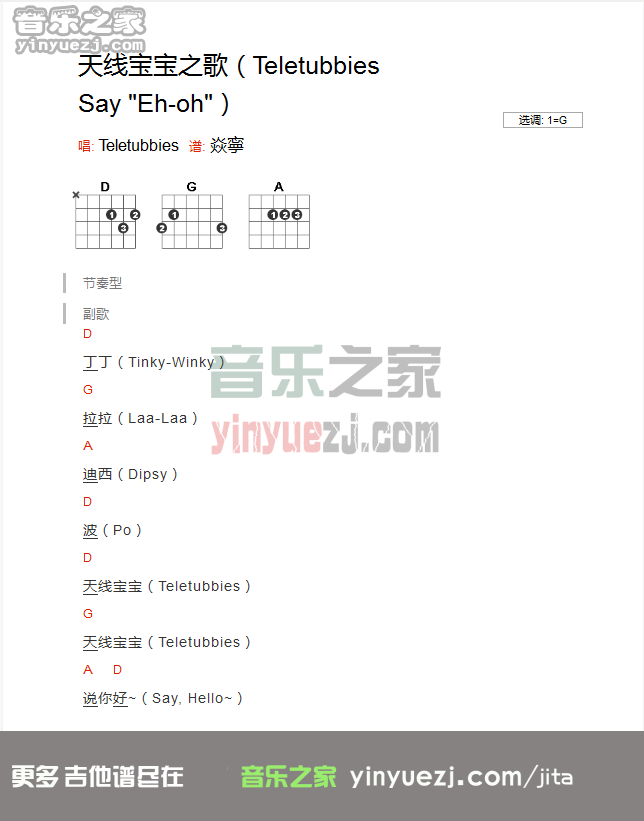 吉他《天线宝宝之歌》吉他谱_吉他弹唱谱_YYZJ编配