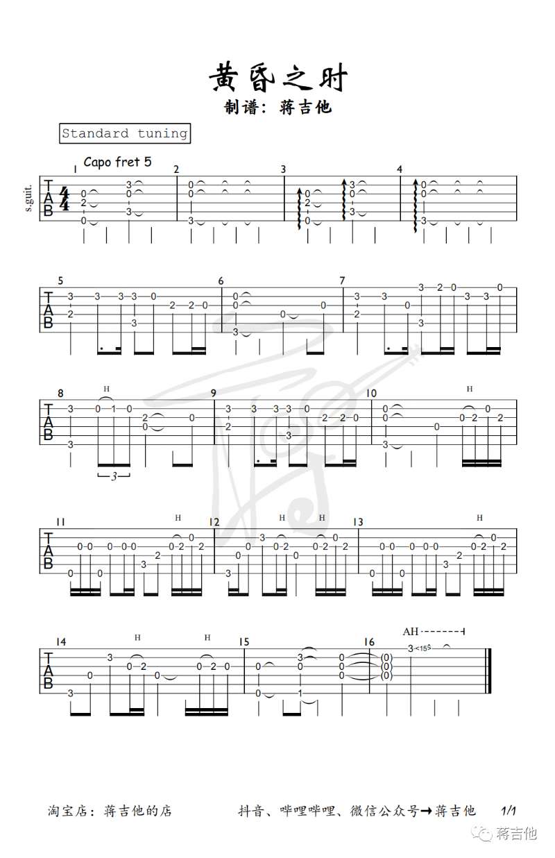 RADWIMPS《黄昏之时》吉他谱,蒋吉他编配出品,共有1张高清图谱,免翻页排版设计。...