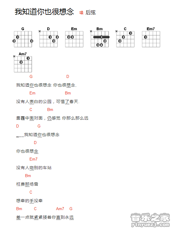 吉他后弦《我知道你也很想念》吉他谱_吉他弹唱谱_YYZJ编配