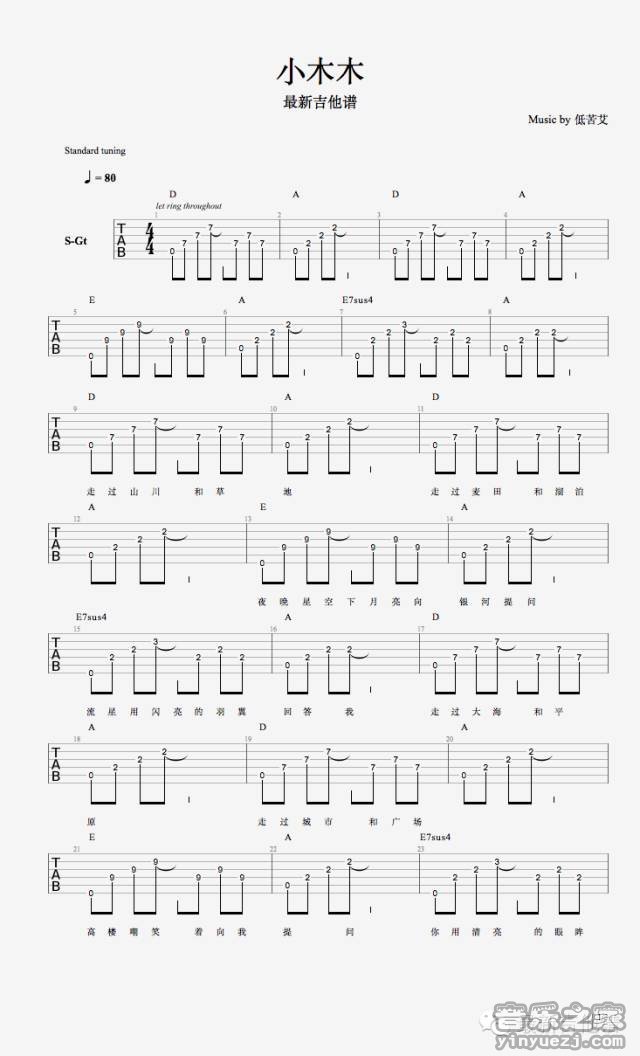 吉他低苦艾《小木木》吉他谱_吉他弹唱谱_最新吉他谱编配