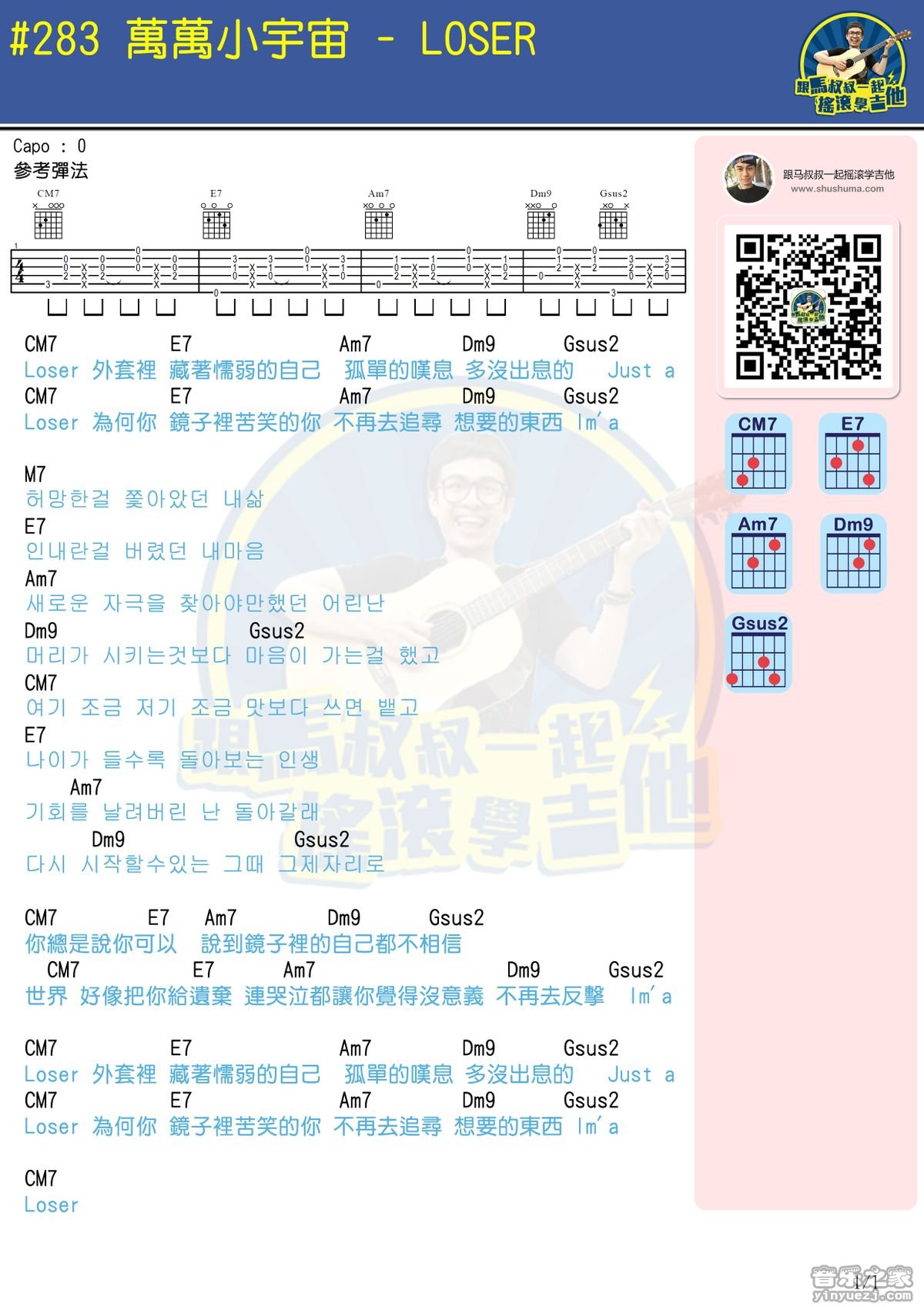 BIGBANG《loser》吉他谱,马叔叔编配出品,共有1张高清图谱,免翻页排版设计。...