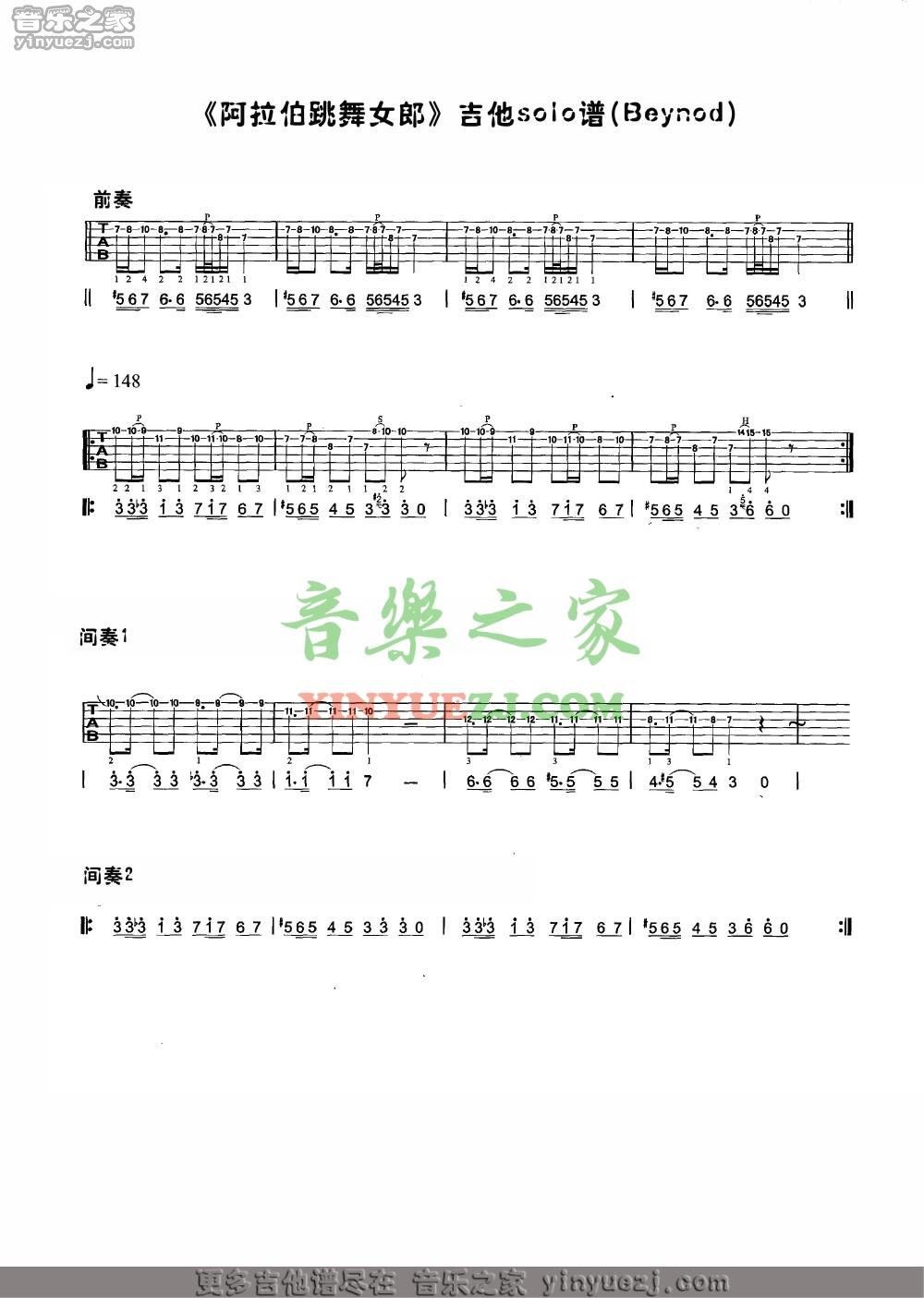 Beyond《阿拉伯跳舞女郎》吉他谱,YYZJ编配出品,共有1张高清图谱,免翻页排版设计。...