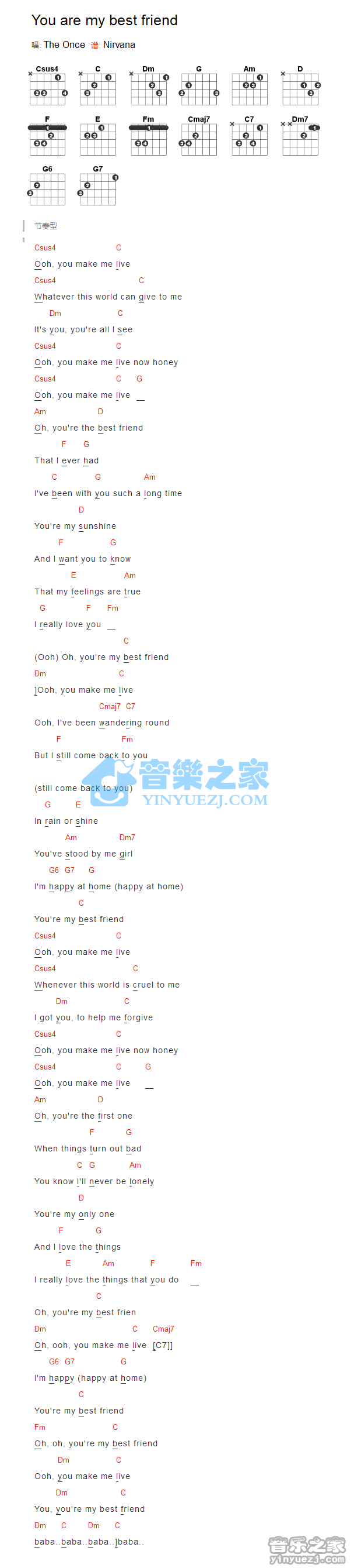 吉他TheOnce《You are my best friend》吉他谱_吉他弹唱谱_YYZJ编配