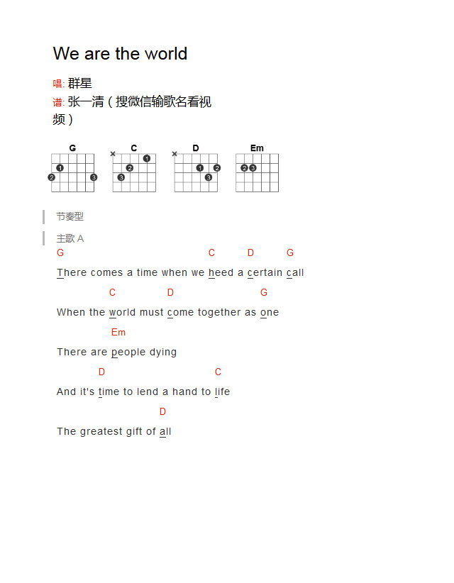吉他杰克逊《we are the world》吉他谱_吉他弹唱谱_YYZJ编配