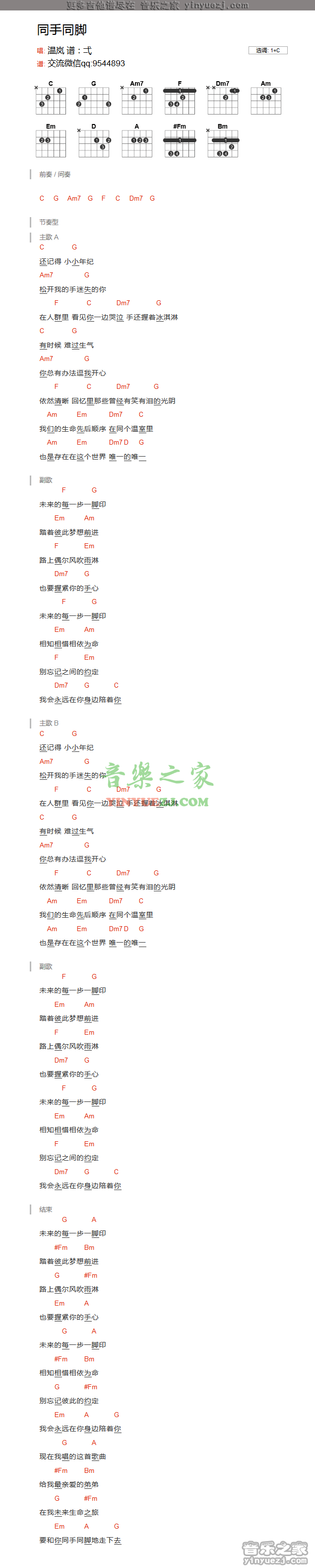 曹轩宾/温岚《同手同脚》吉他谱,YYZJ编配出品,共有1张高清图谱,免翻页排版设计。...
