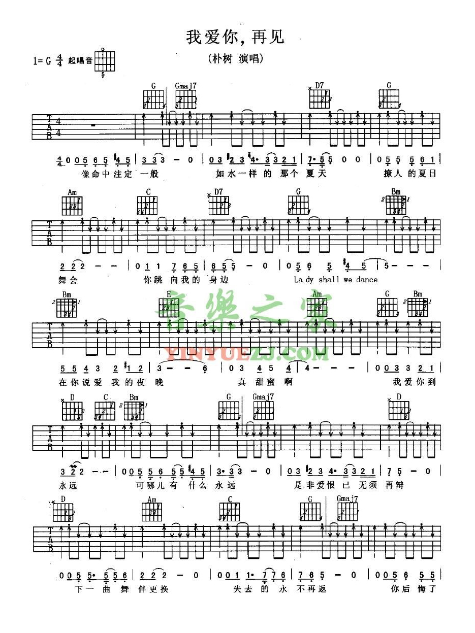 吉他朴树《我爱你再见》吉他谱_吉他弹唱谱