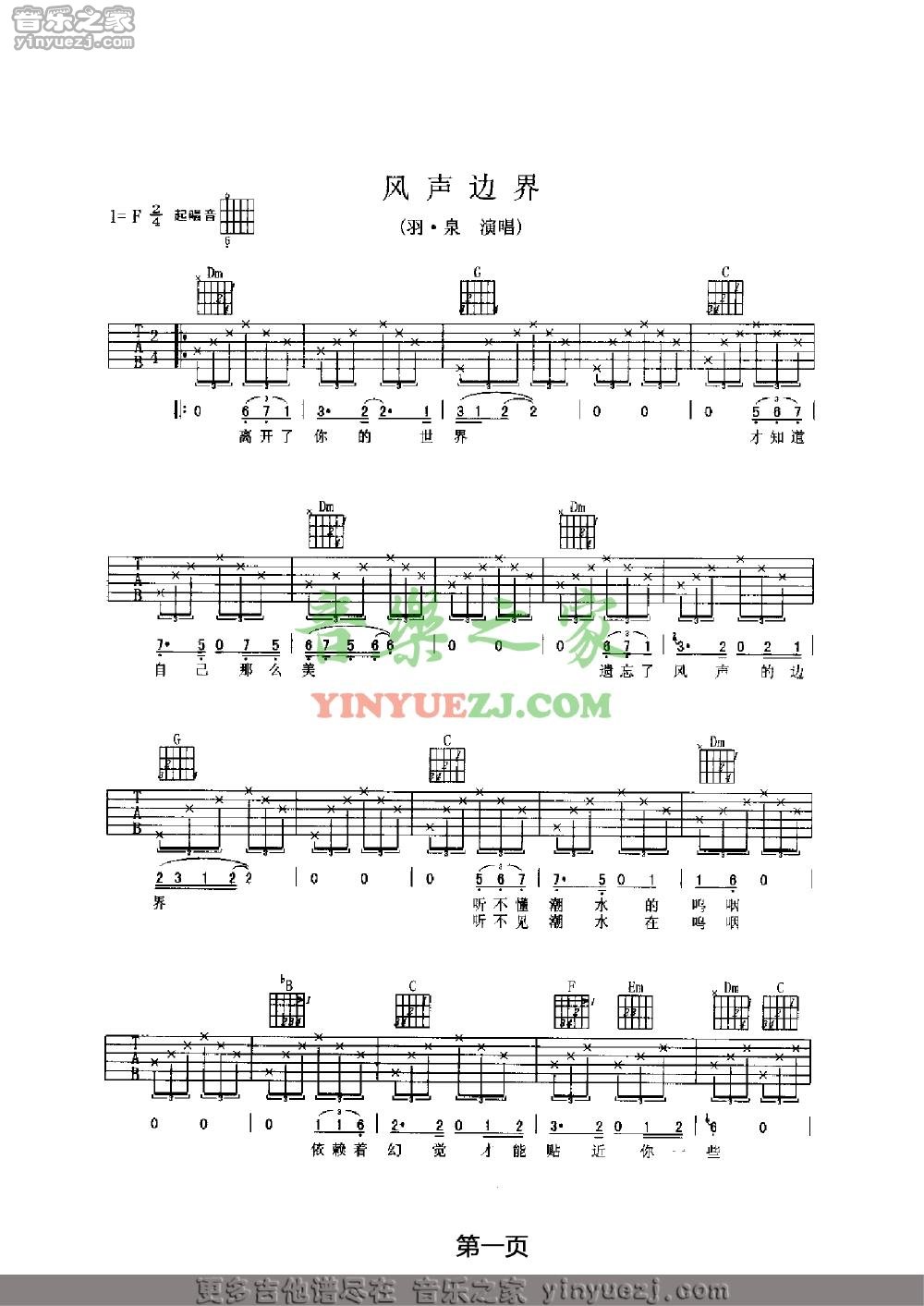 吉他羽泉《风声边界》吉他谱_吉他弹唱谱_YYZJ编配