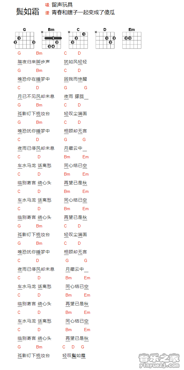 吉他留声玩具《鬓如霜》吉他谱_吉他弹唱谱_YYZJ编配