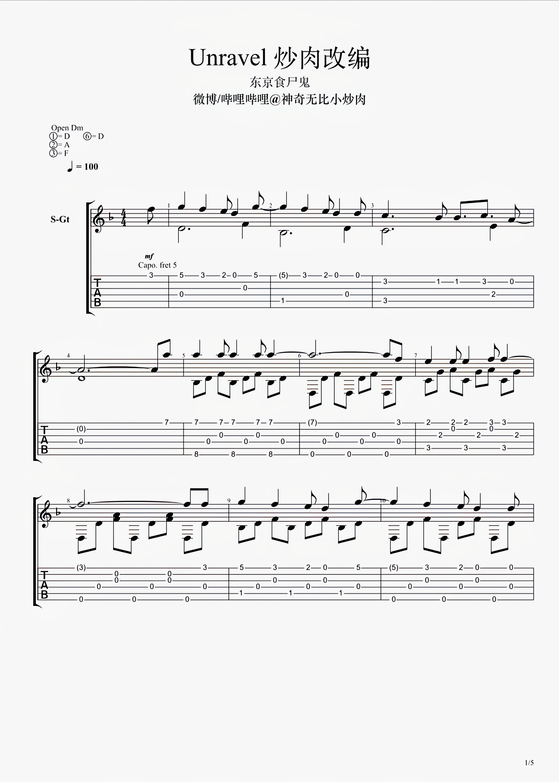 东京食尸鬼《unravel》吉他谱,共有5张高清图谱。...