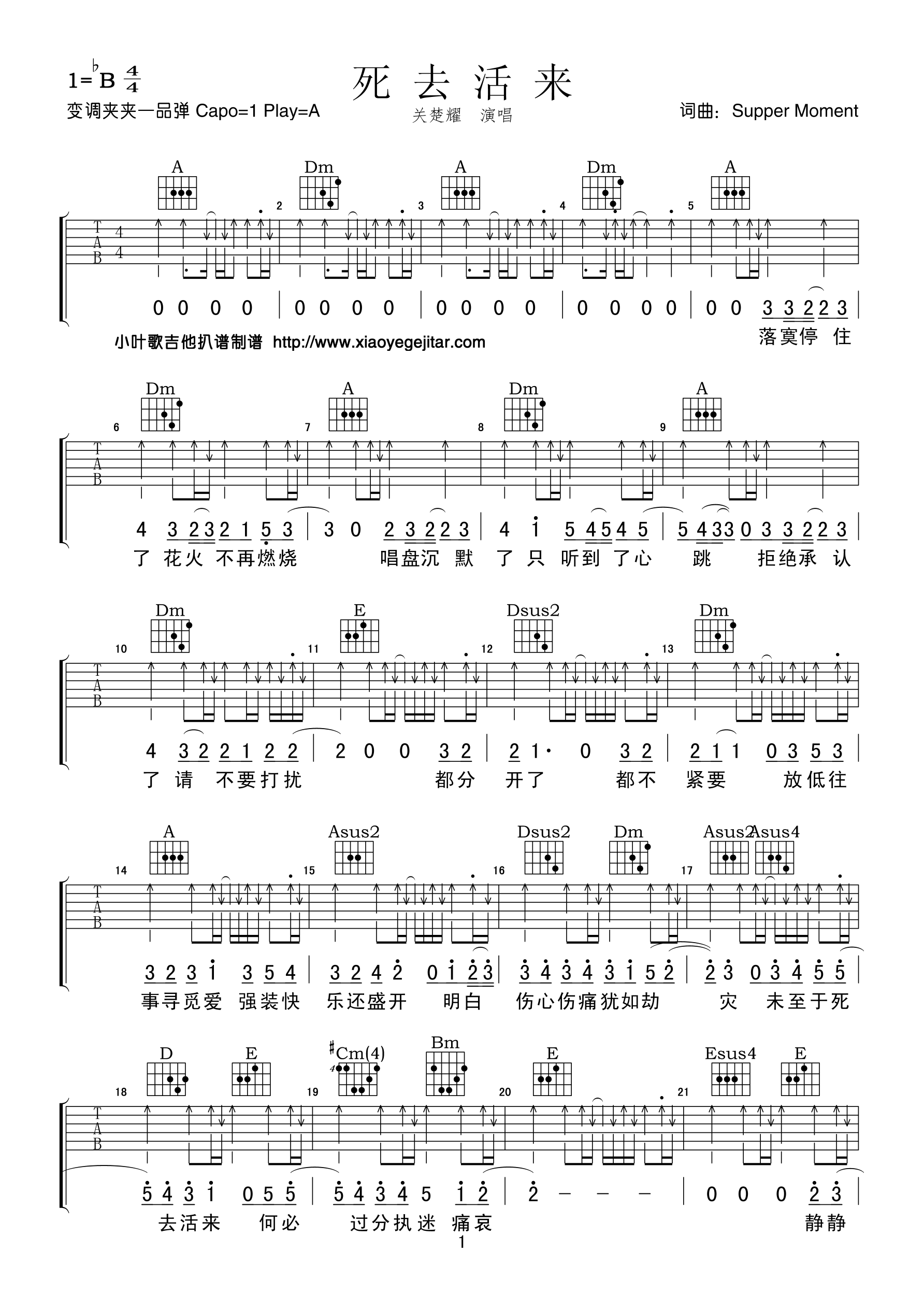 关楚耀《死去活来》吉他谱,小叶歌编配出品,共有3张高清图谱。...