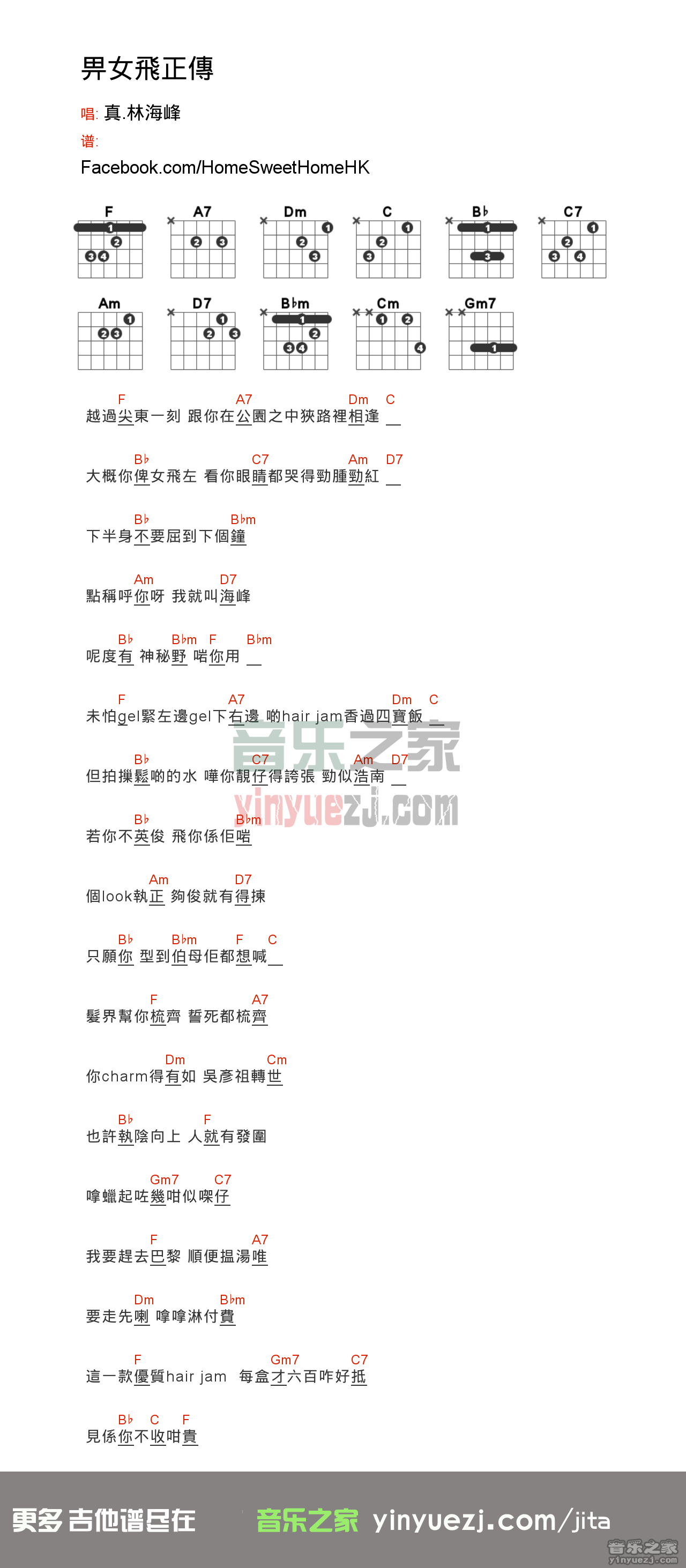吉他林海峰《畀女飞正传》吉他谱_吉他弹唱谱