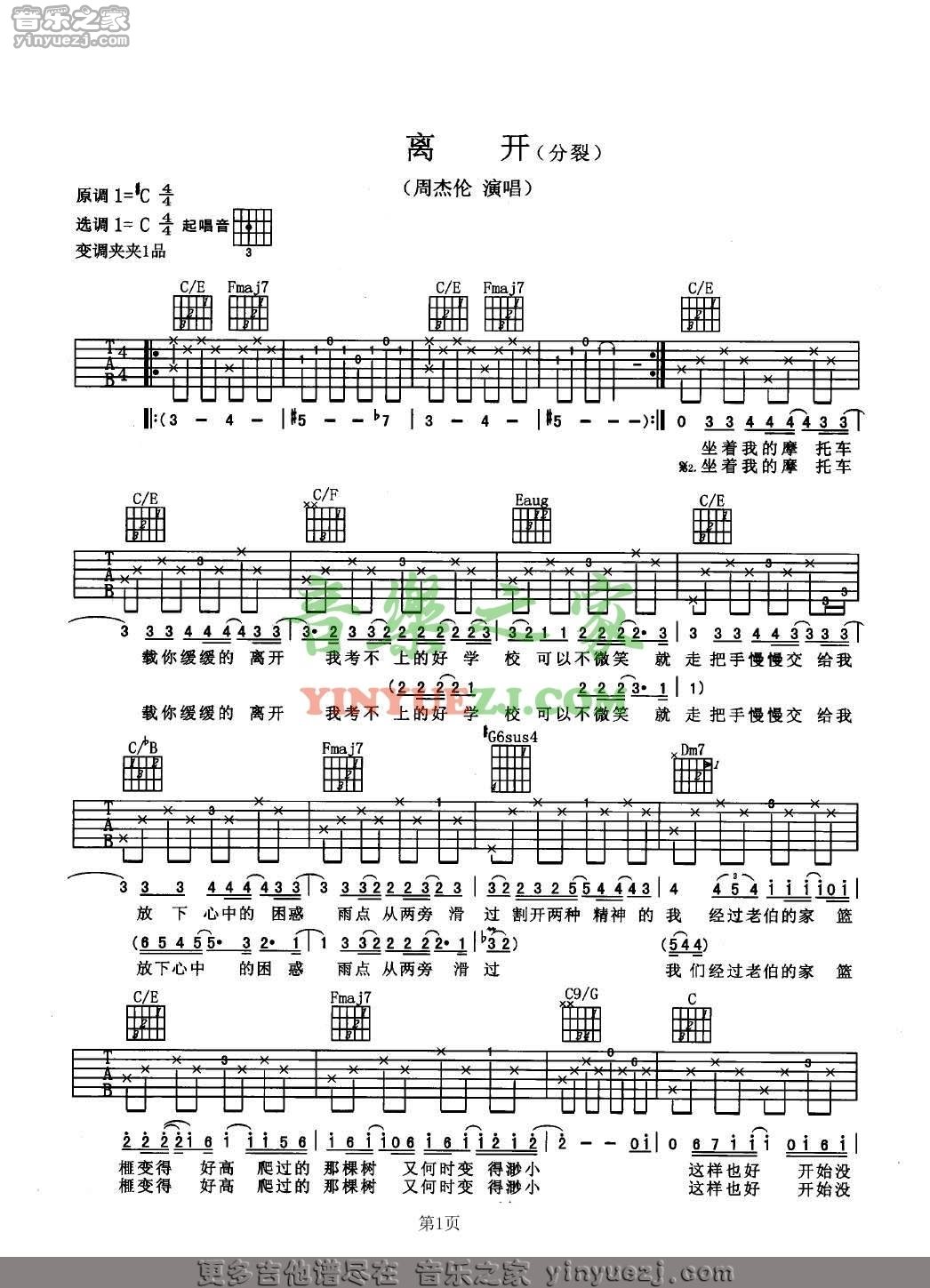 吉他周杰伦《离开(分裂)》吉他谱_吉他弹唱谱_YYZJ编配