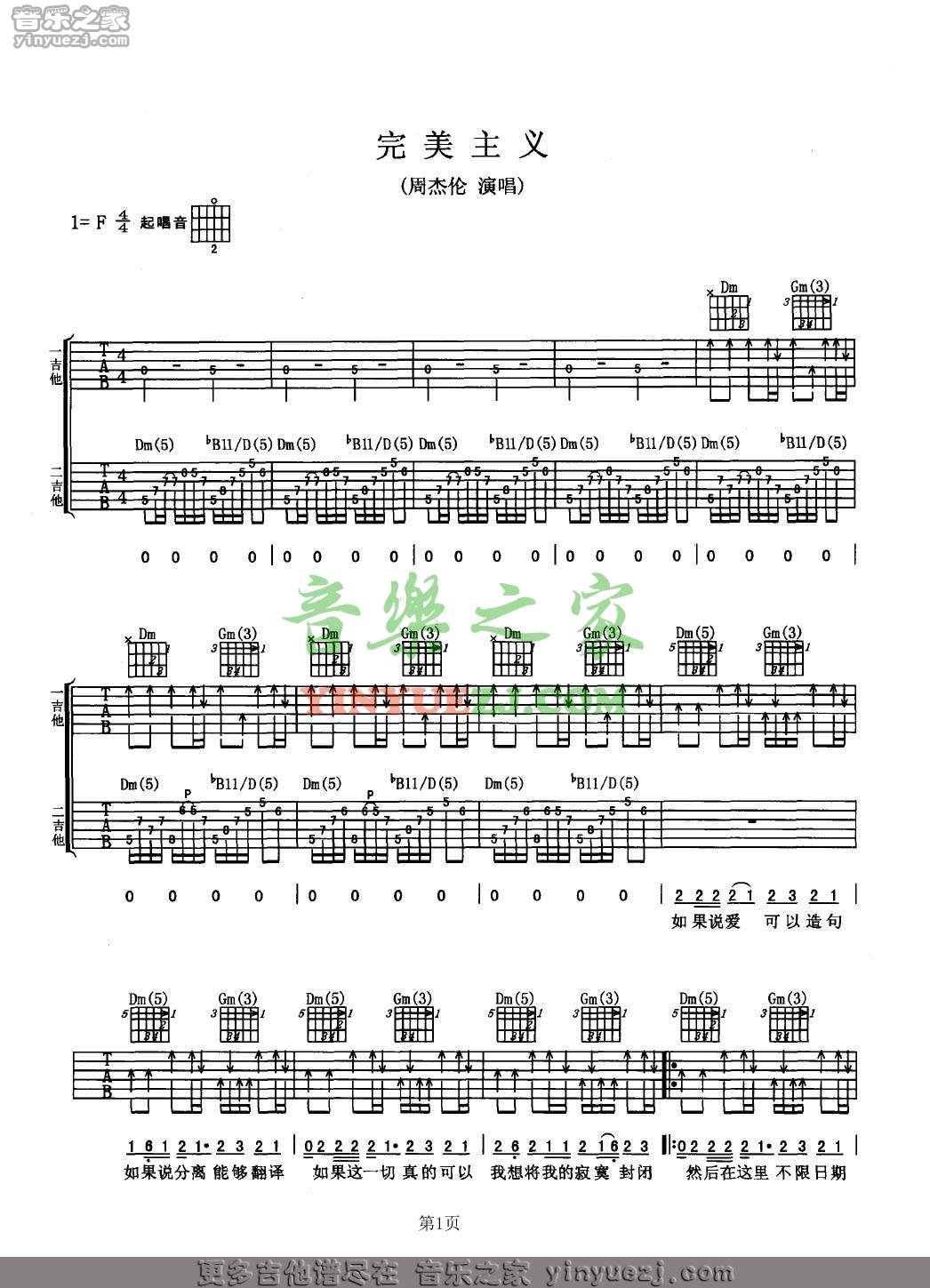 吉他周杰伦《完美主义》吉他谱_吉他弹唱谱_YYZJ编配
