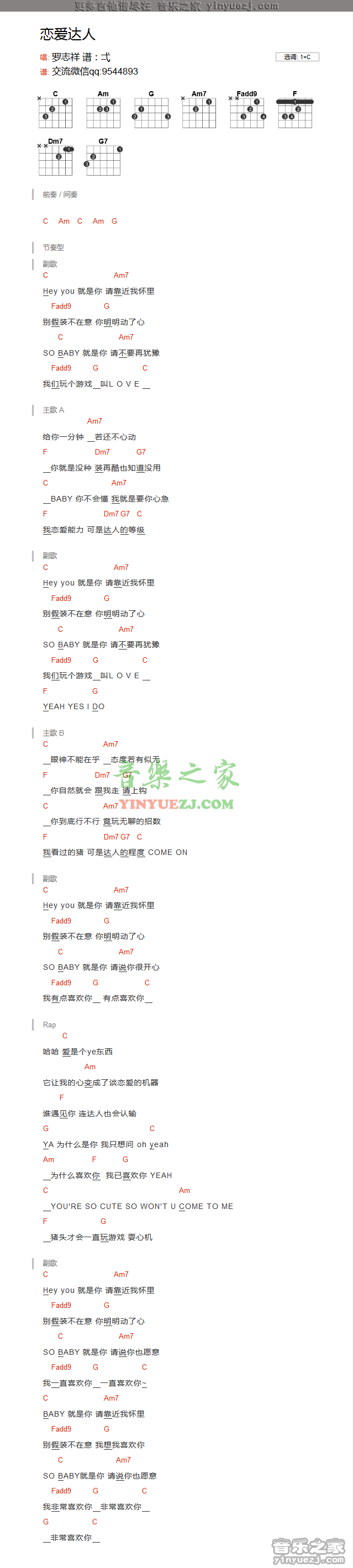 吉他罗志祥《恋爱达人》吉他谱_吉他弹唱谱_YYZJ编配