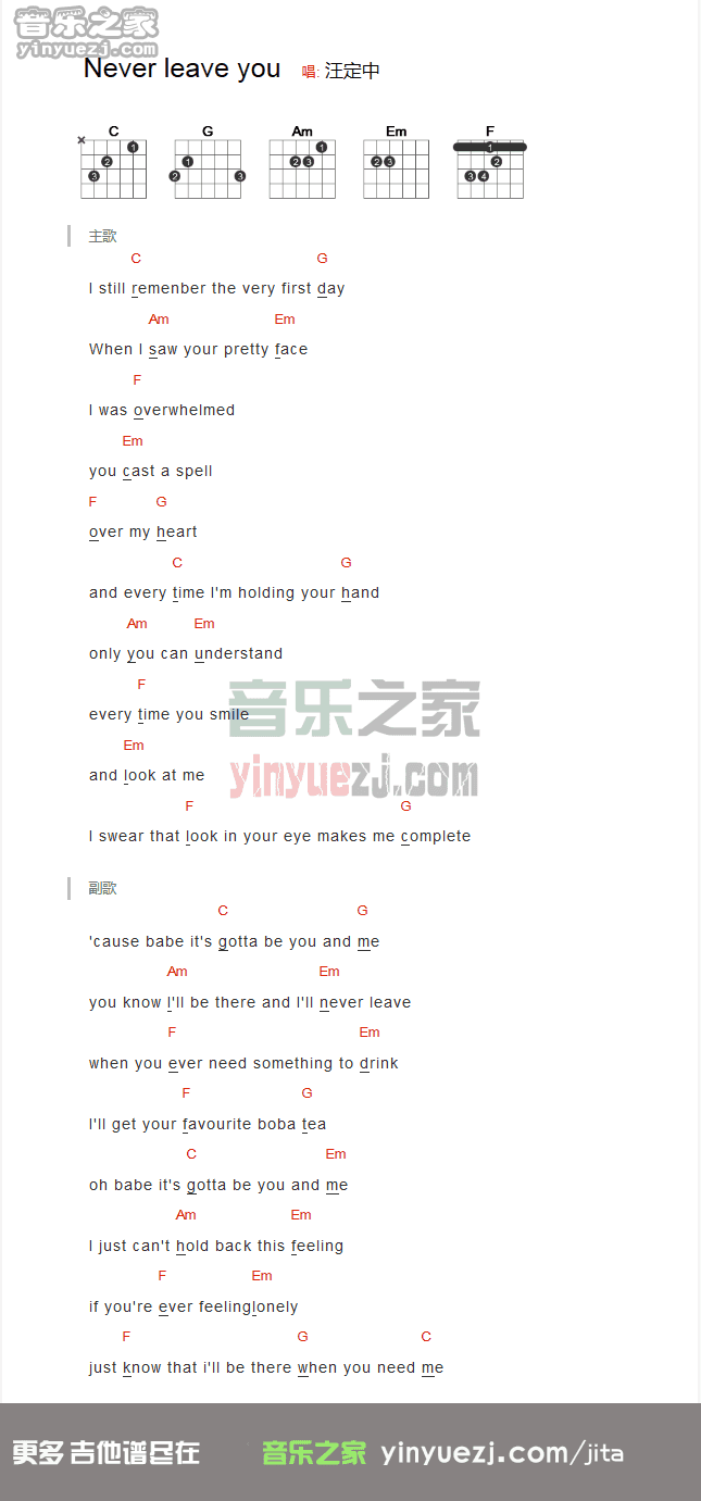 吉他Michel Teló 米歇尔·泰勒昭哥《never leave you》吉他谱_吉他弹唱谱_YYZJ编配