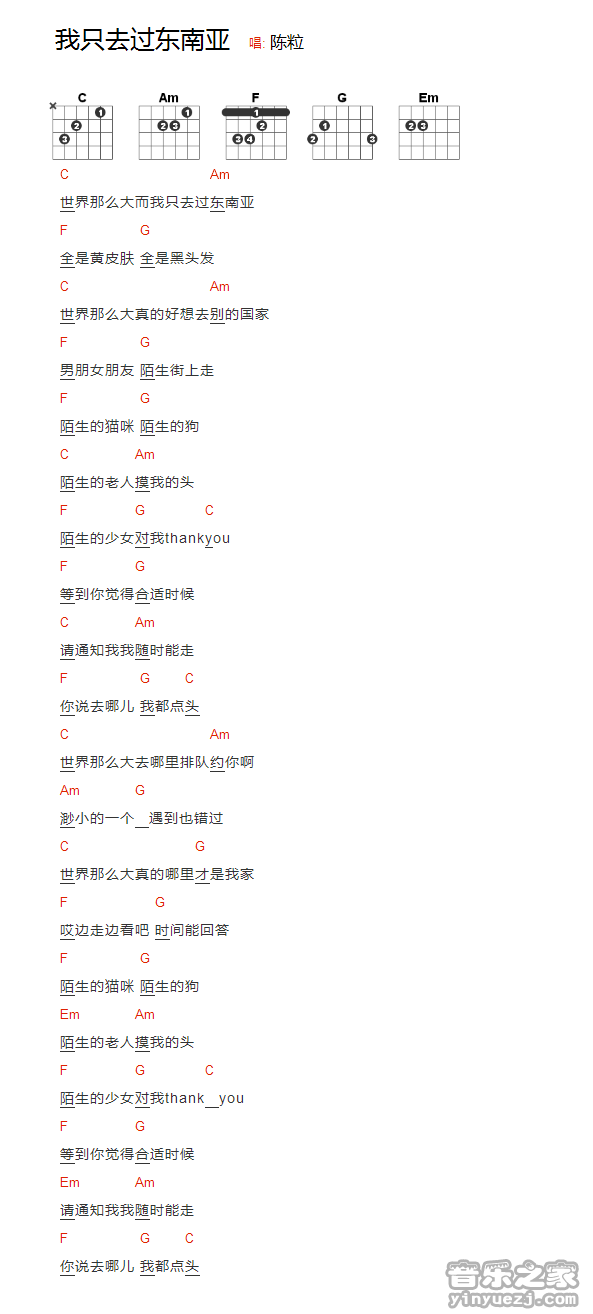 吉他陈粒《我只去过东南亚》吉他谱_吉他弹唱谱_YYZJ编配