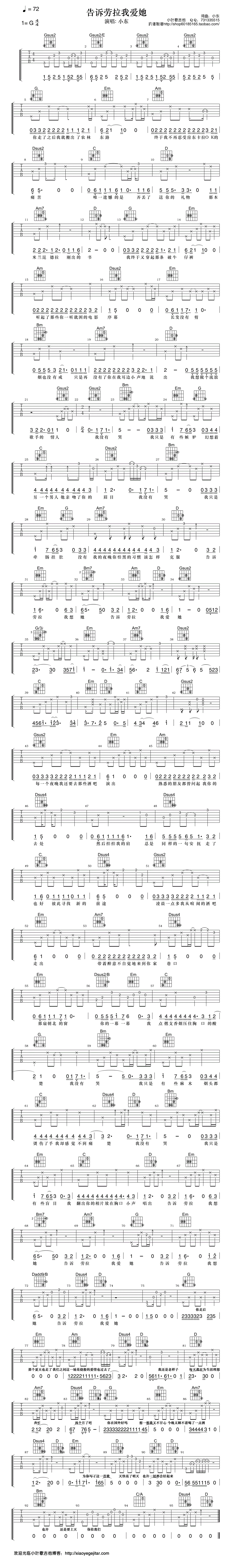 小东《告诉劳拉我爱她》吉他谱,小叶歌编配出品,共有1张高清图谱,免翻页排版设计。...