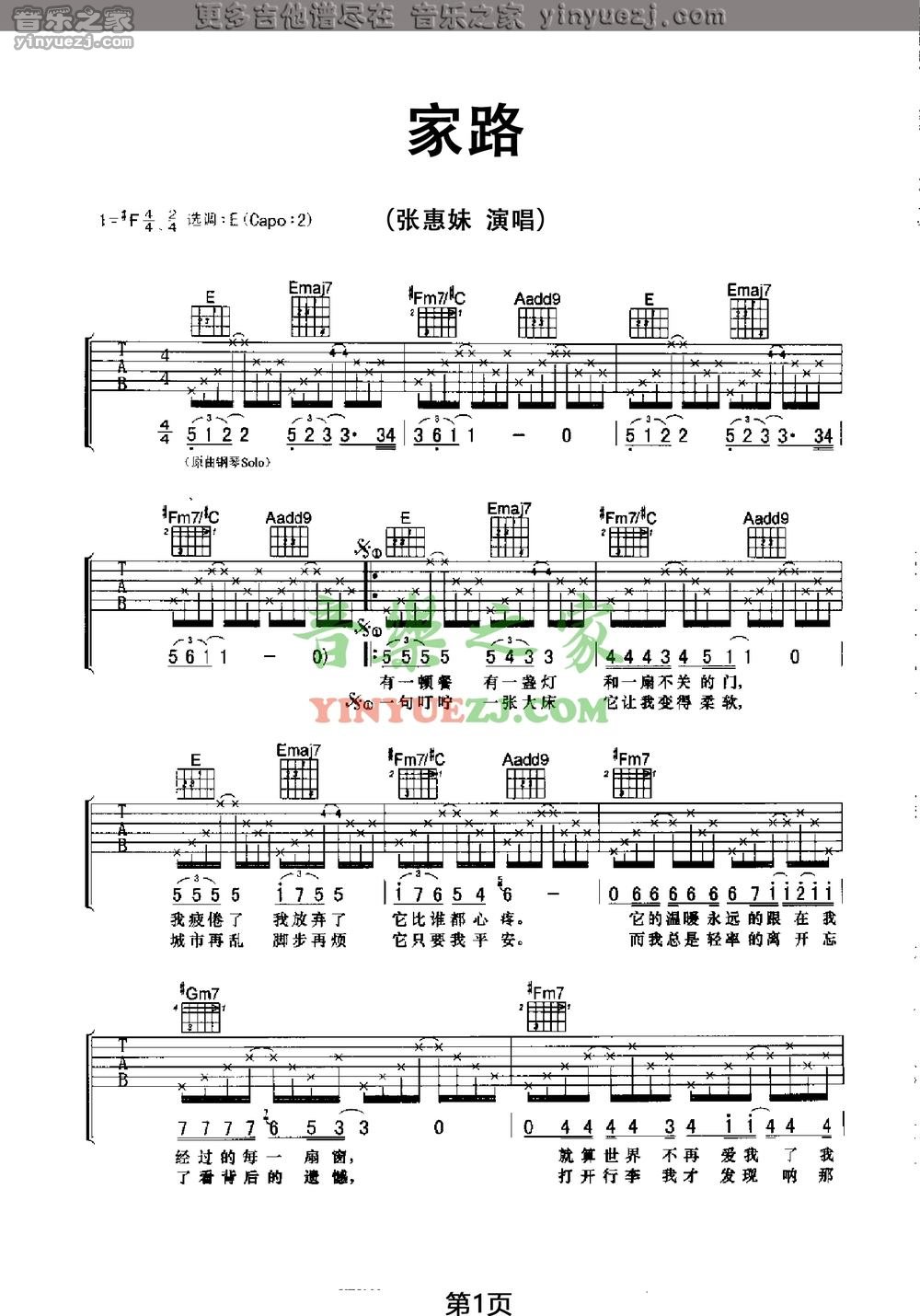 吉他张惠妹《家路》吉他谱_吉他弹唱谱_YYZJ编配