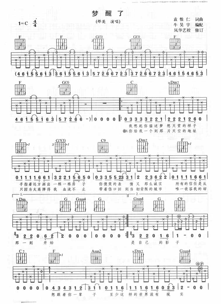 吉他那英《梦醒了》吉他谱_吉他弹唱谱_风华艺校编配