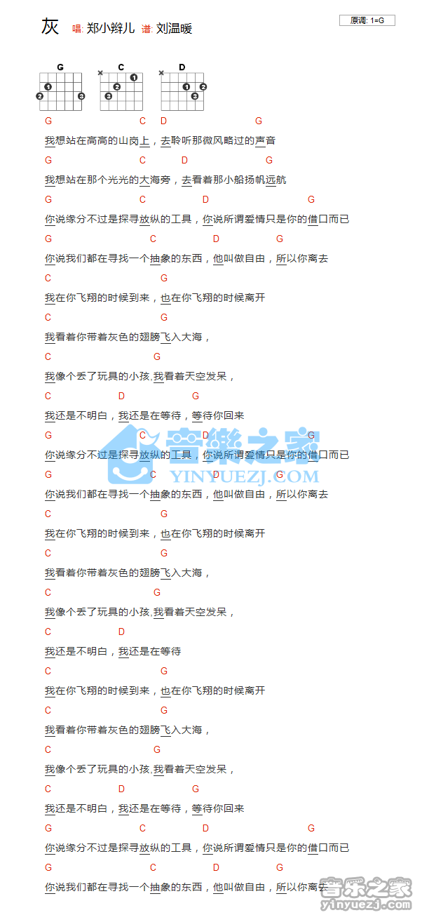 吉他郑小辫儿《灰》吉他谱_吉他弹唱谱_YYZJ编配