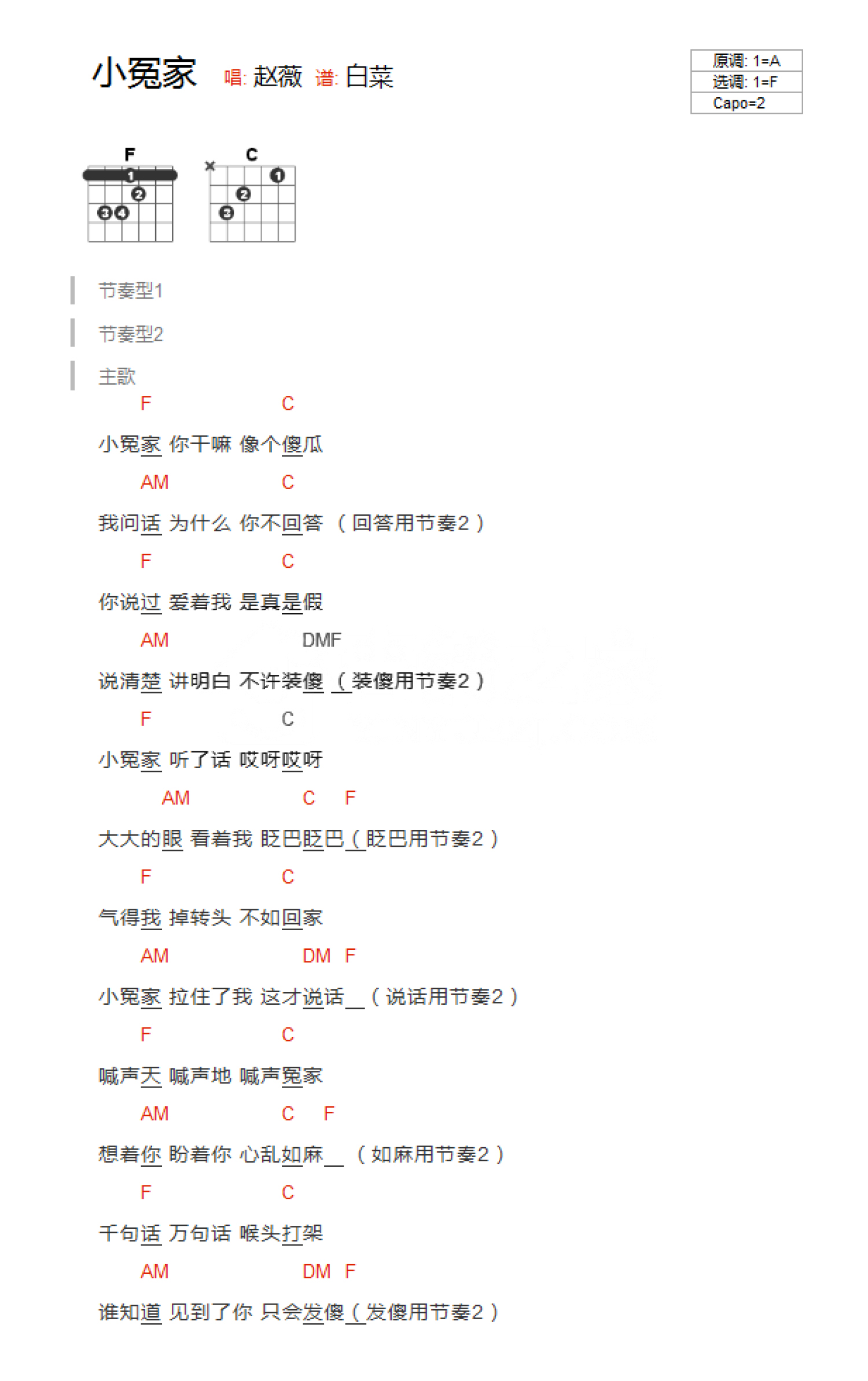 吉他赵薇《小冤家》吉他谱_吉他弹唱谱_YYZJ编配