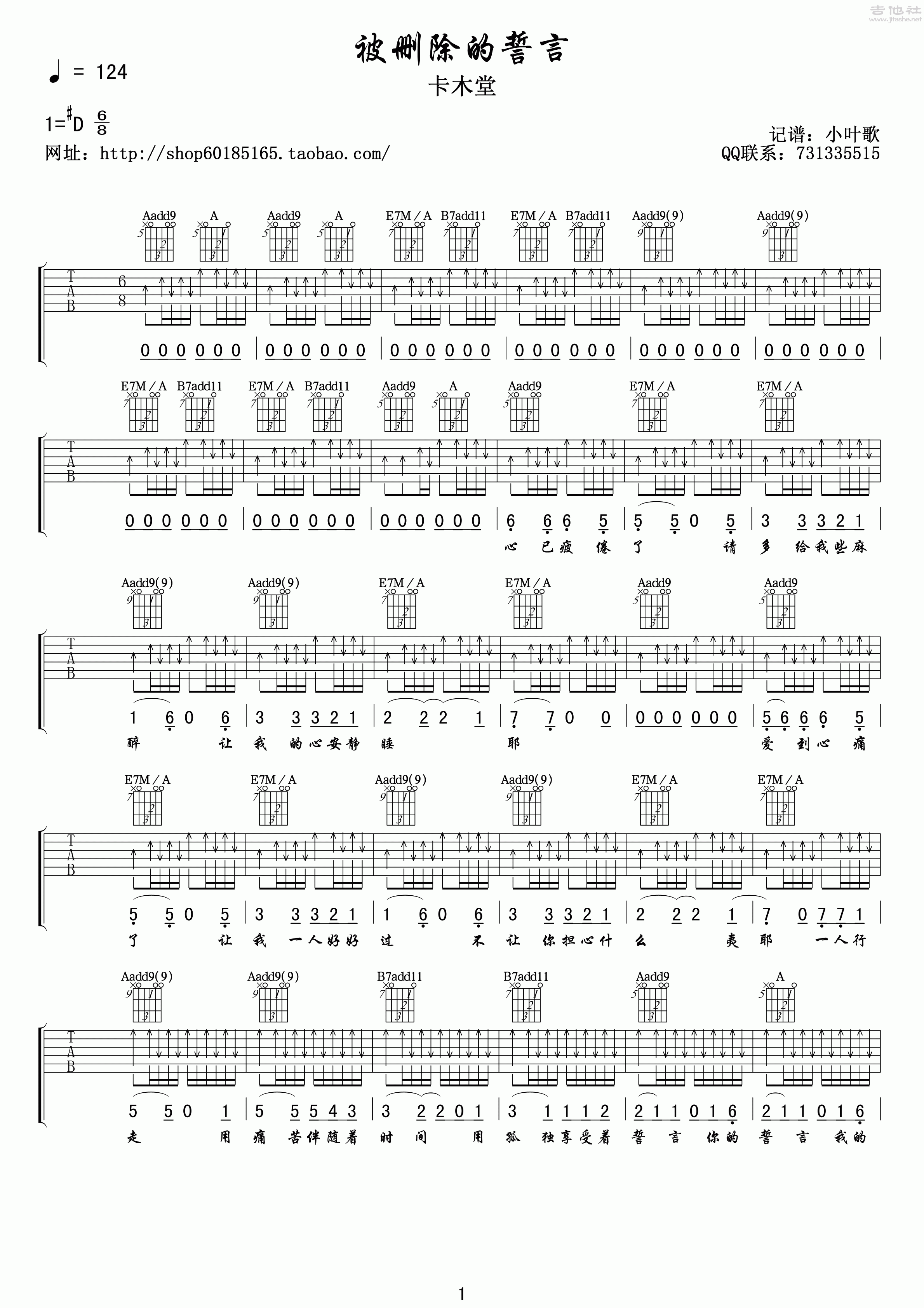 吉他卡木堂《被删除的誓言》吉他谱_吉他弹唱谱_小叶歌编配