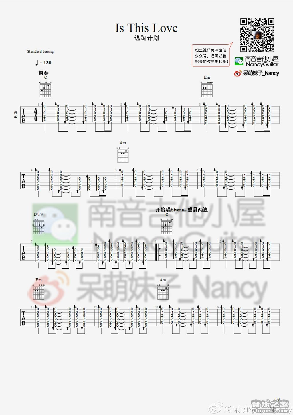 逃跑计划《IsThisLove》吉他谱,南音吉他编配出品,共有3张高清图谱。...