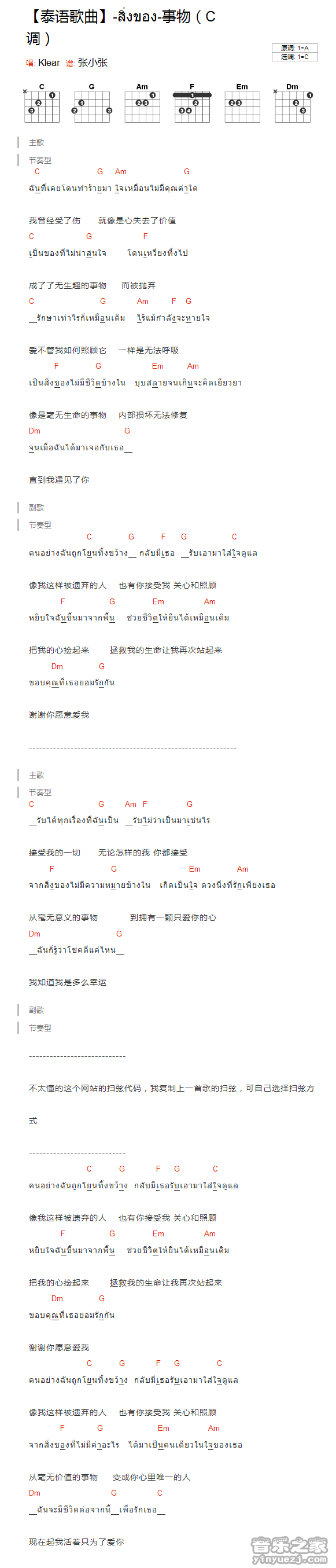吉他泰语歌曲《事物》吉他谱_吉他弹唱谱_YYZJ编配