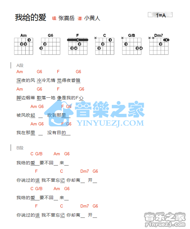 吉他张震岳《我给的爱》吉他谱_吉他弹唱谱_YYZJ编配