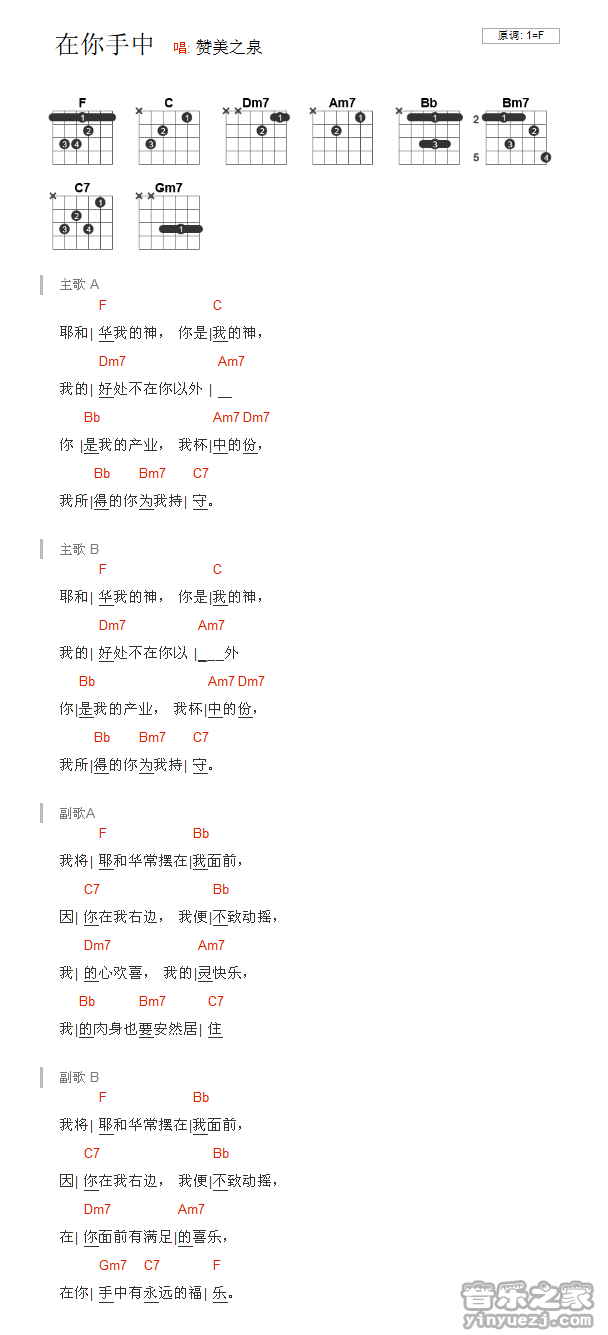 吉他赞美之泉《在你手中》吉他谱_吉他弹唱谱_网络转载编配